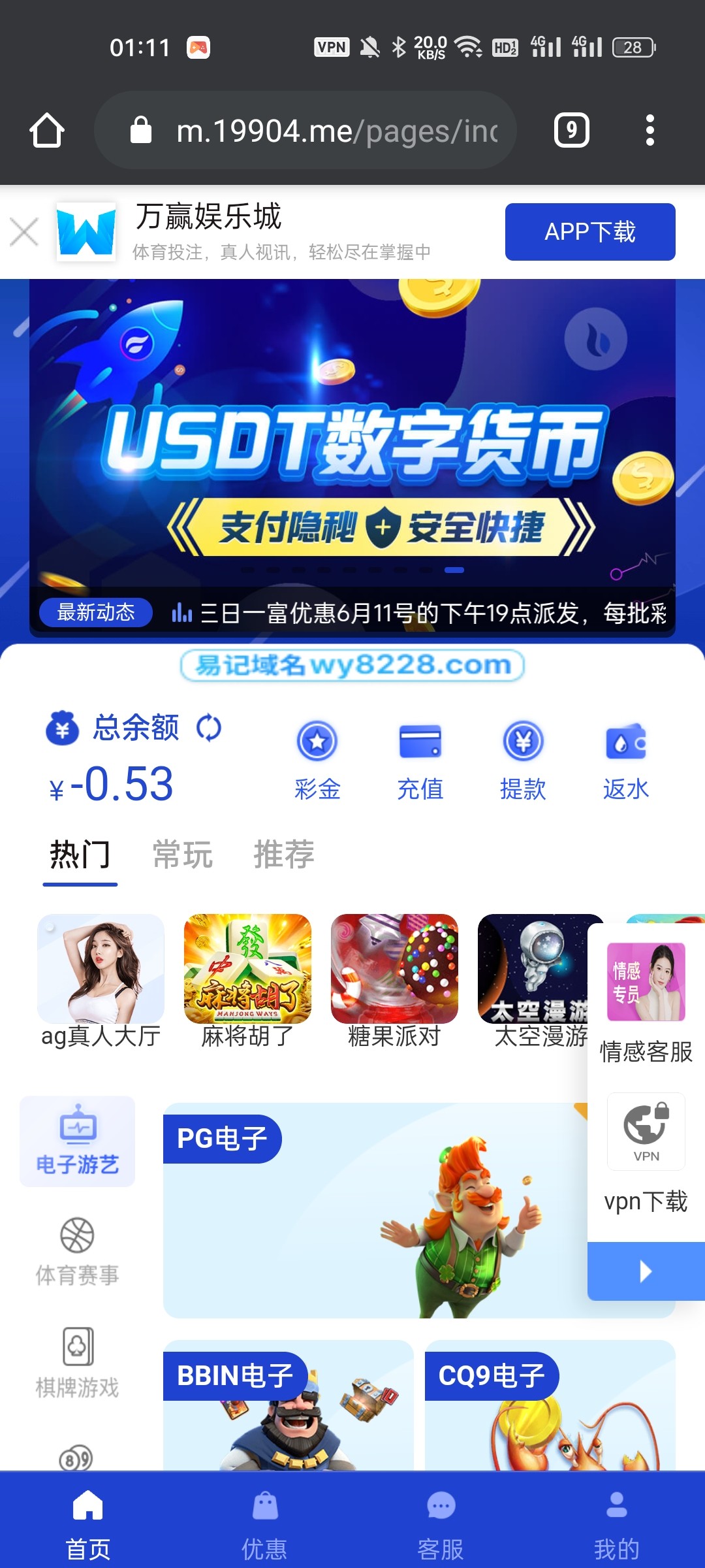 万赢老用户回了28彩金