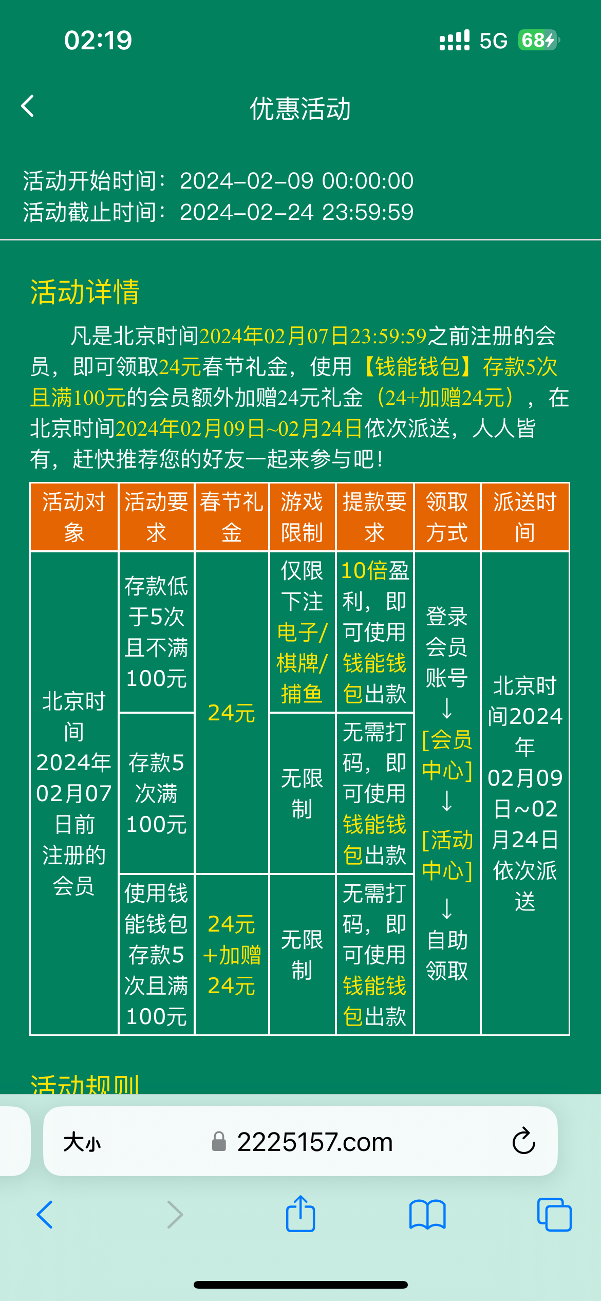 5157回馈24➕24彩金
