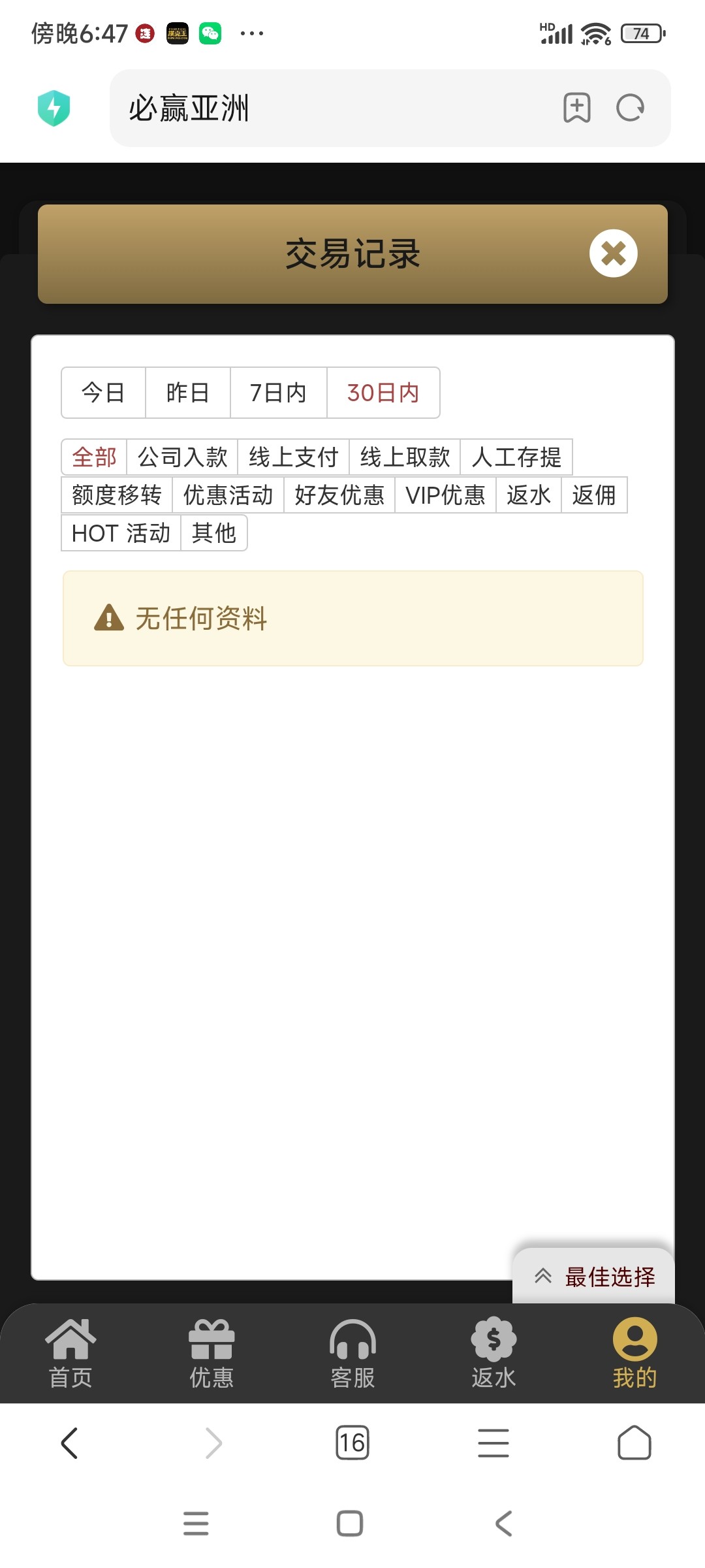 必赢送米应该是充值过才有我没打出来朋友出三百网址图上自己看