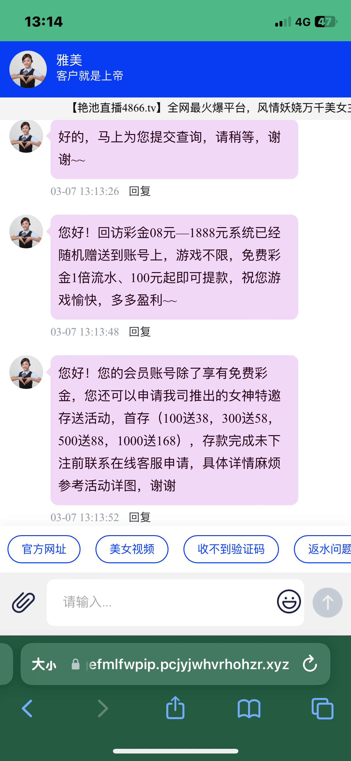 一个星期前回访送18白嫖提现100一直审核中,问就是需要充同等金额