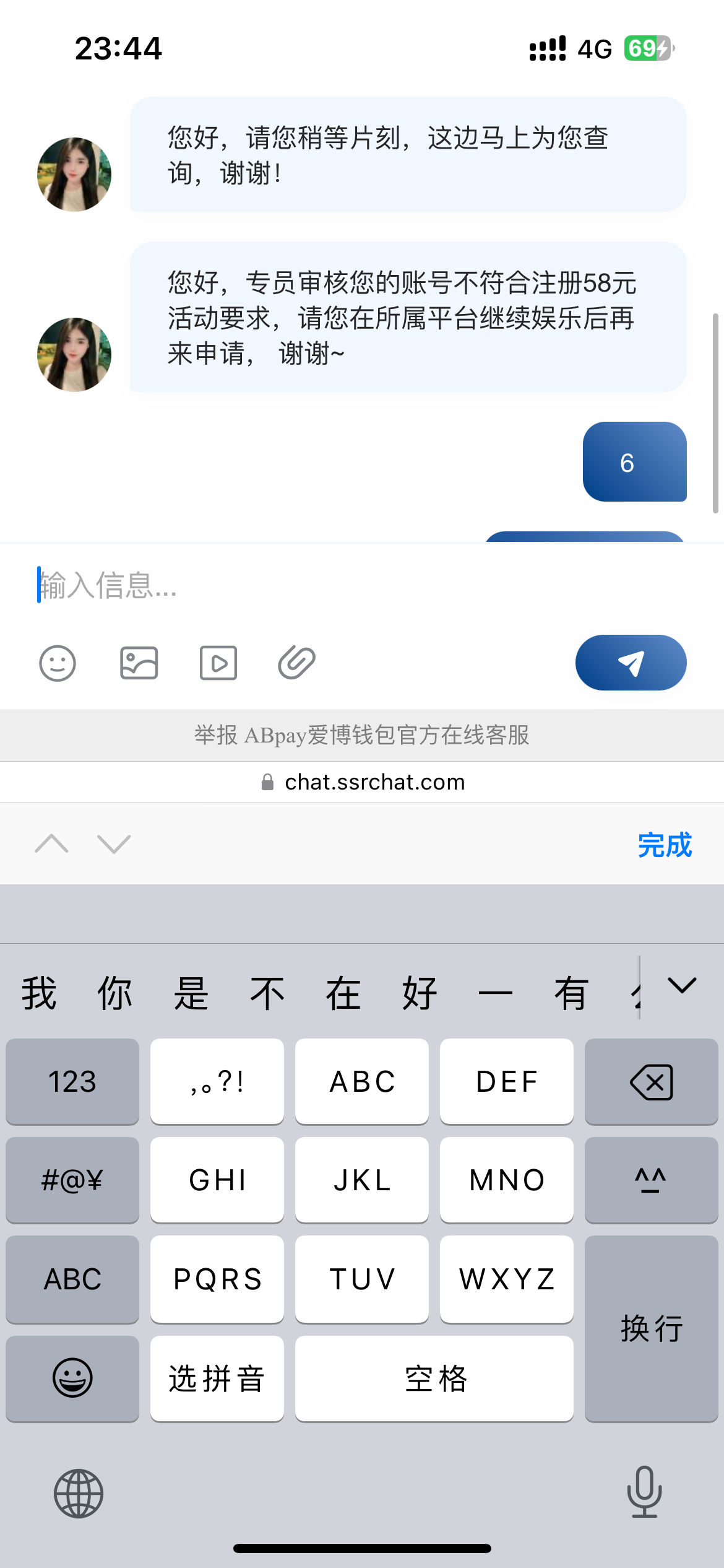 您好,已为您提交专员处理,若符合活动要求,红包会在20分钟内赠送到您的钱包,请注意核实查收,感谢您对ABpay的支持与信任! 没下文了 快一个小时了