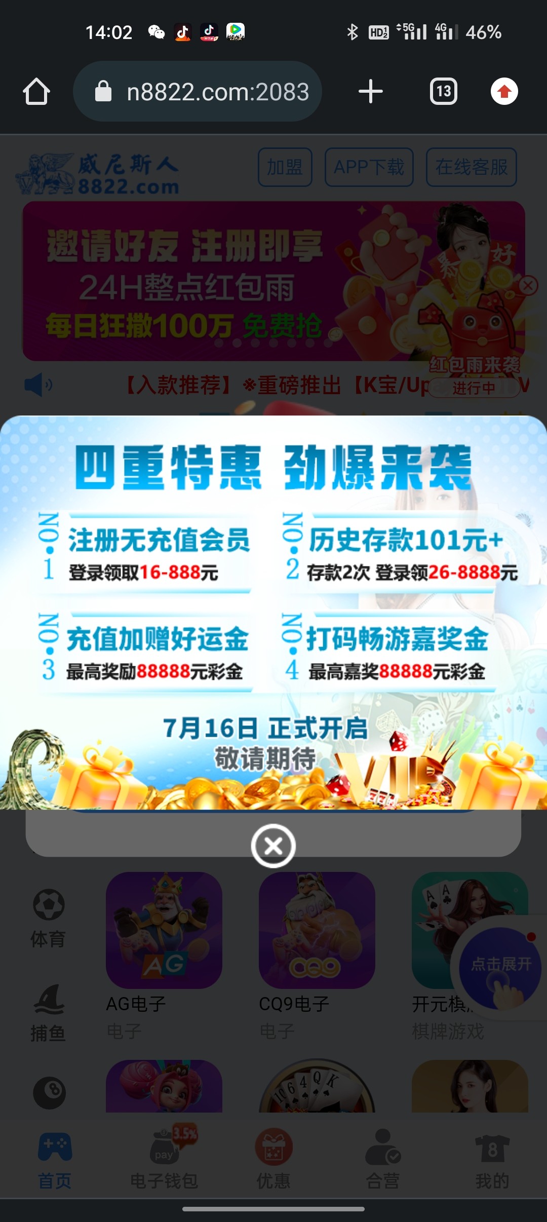 8822老用户登录彩金
