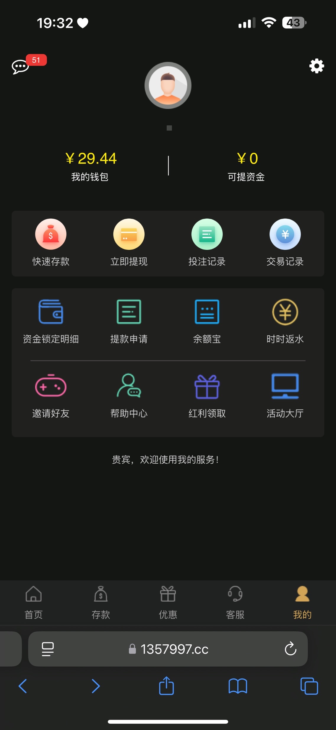 好几年没玩了,刚收到短信登录上去。点我的,点红利领取,我有8块,有号的去看看。网址: 1357997.cc