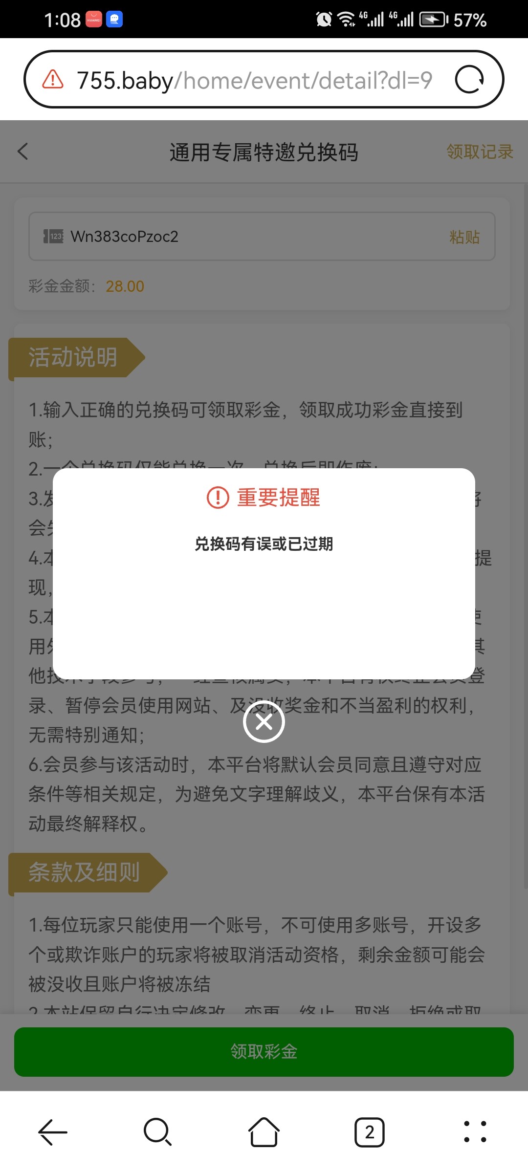 28 彩金吃上了 提现三分钟之内到账