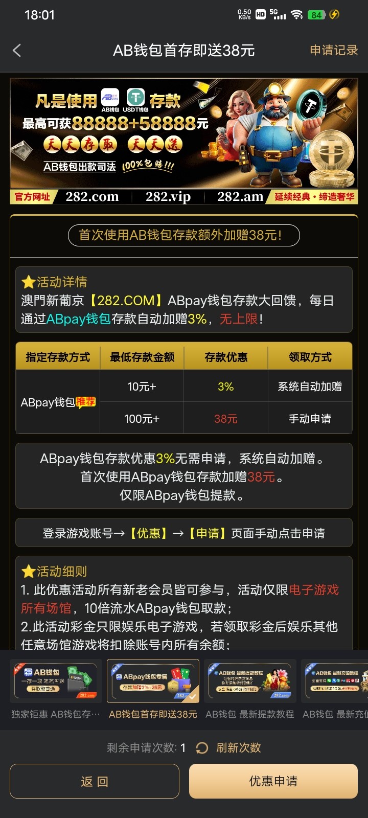 用ab钱包首存100可以领38+18+18可以先打本金流水打完再去领彩金流水比较高彩金282.com