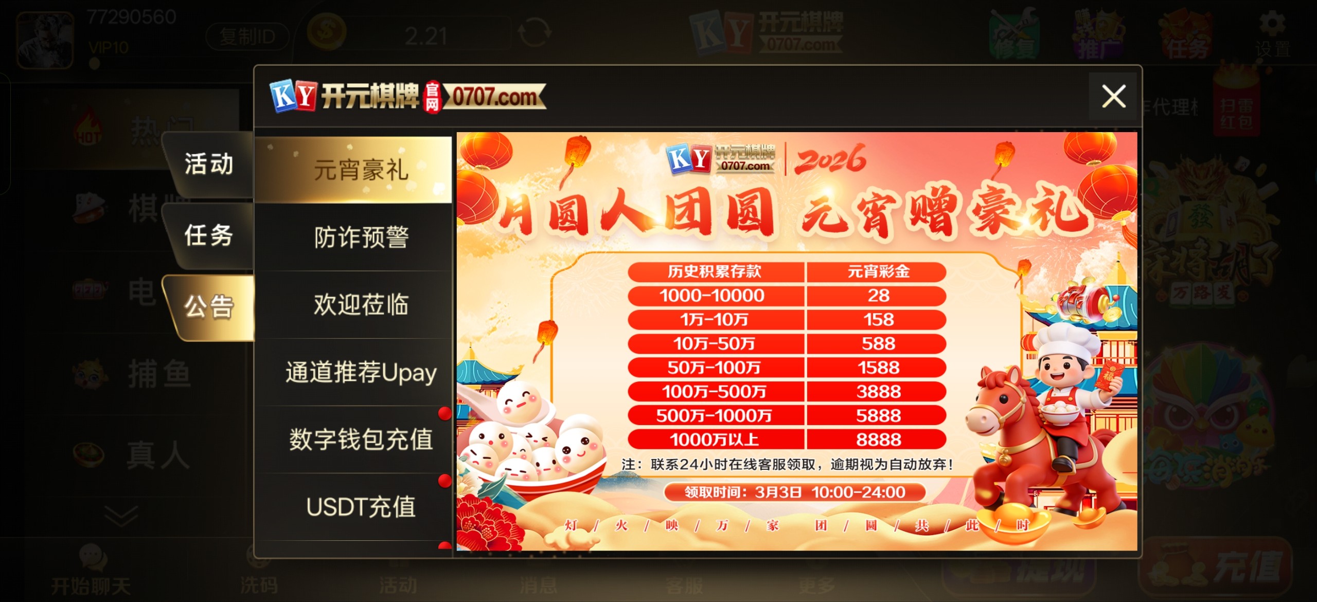 开元元宵回馈领彩金