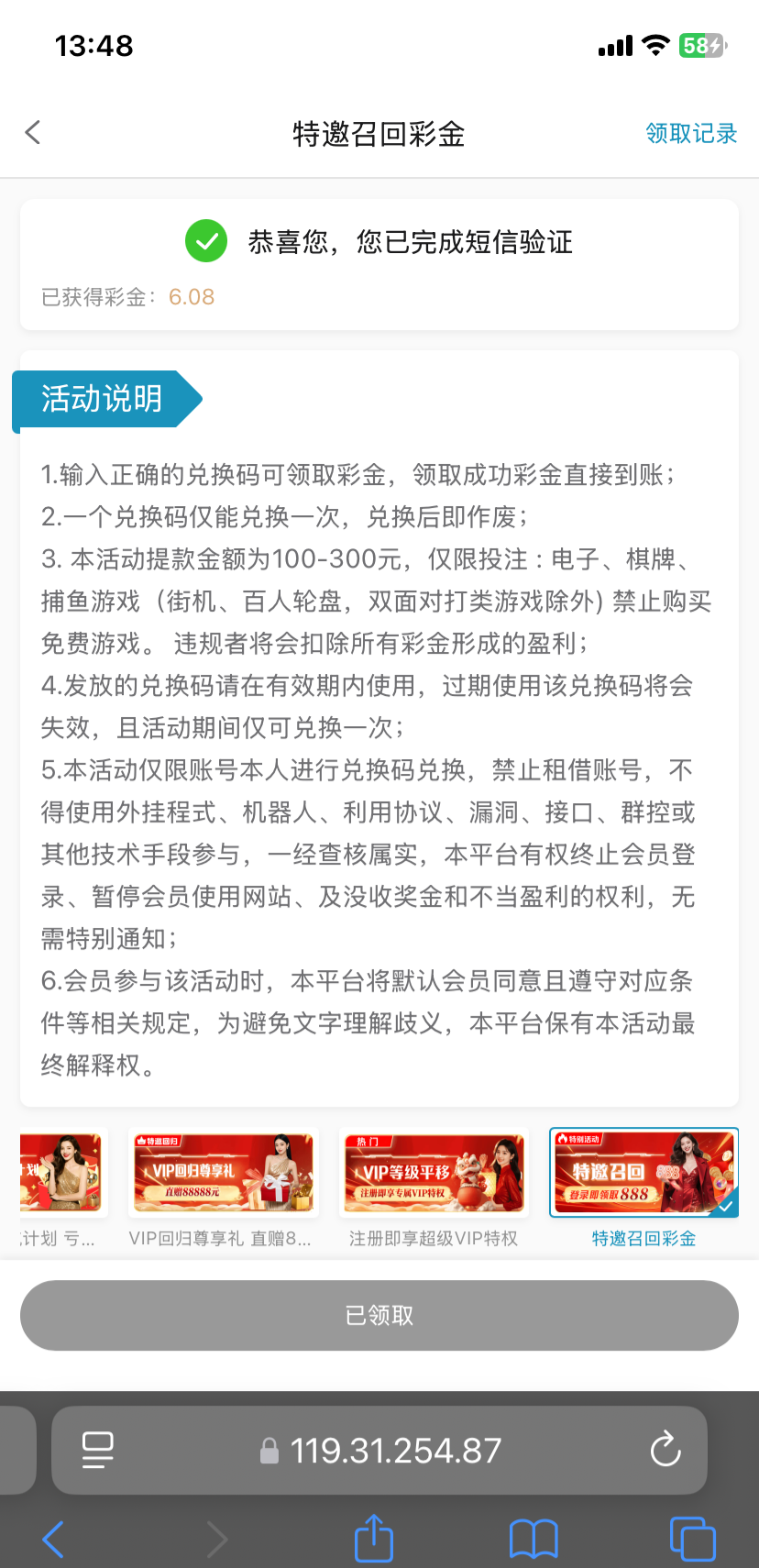 优惠里面用手机号领取6元,只能提现100-300,pgpg.ai出款自测