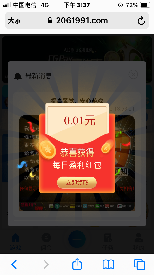 如题,没号无视,2061991.com 登录自动弹出红包,随机金额。顺便说一嘴,华体会这傻逼平台,打电话回馈35,提黑了。这里就不分享了,没用,反正也是出不了。