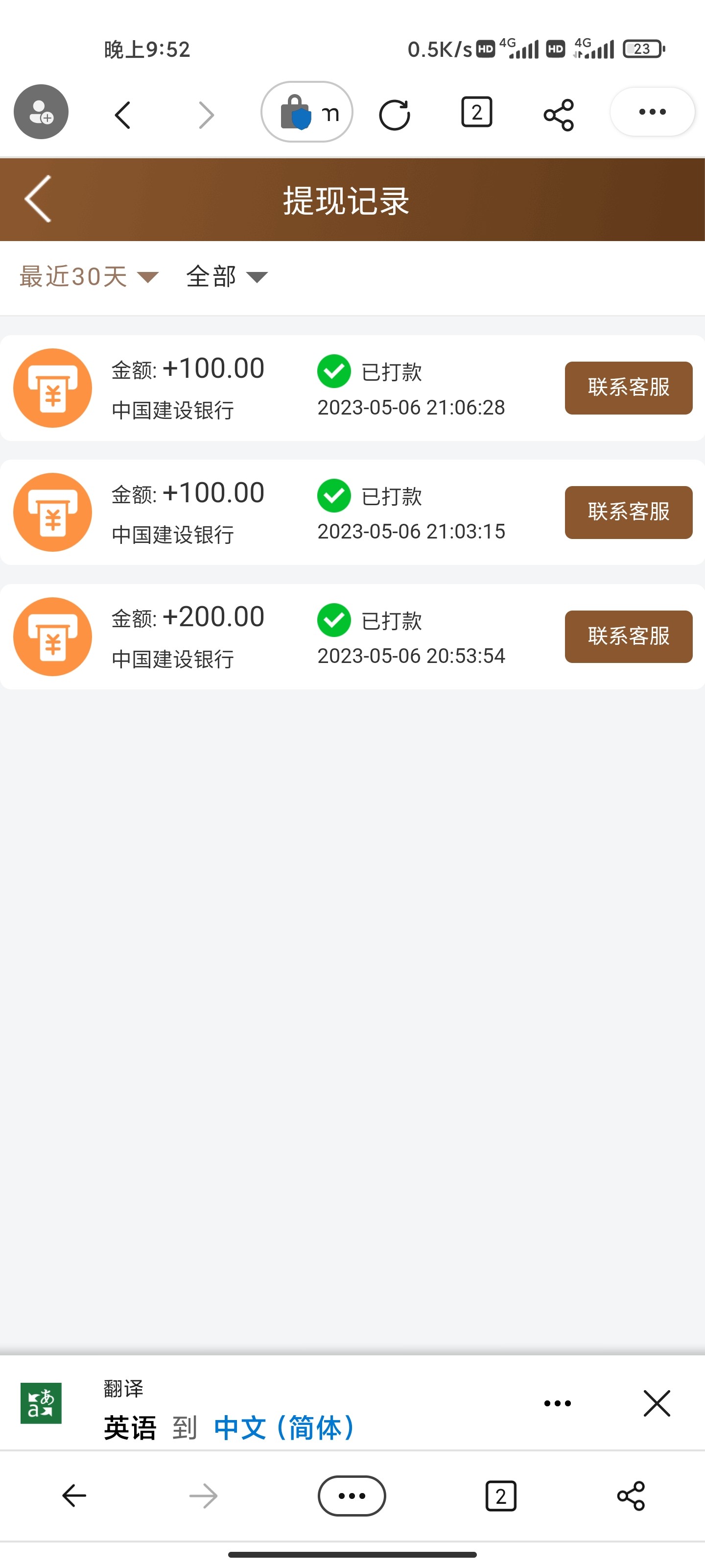 提款400已经到账