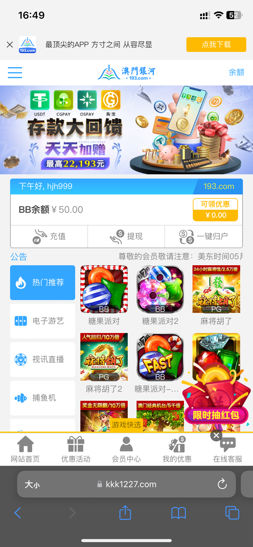用户注册特邀50彩金