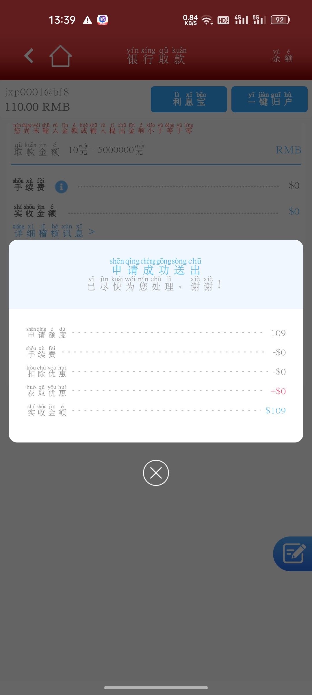开始28打到90多踢款给我退回来然后麻2又上260,提款显示成功银行卡没到