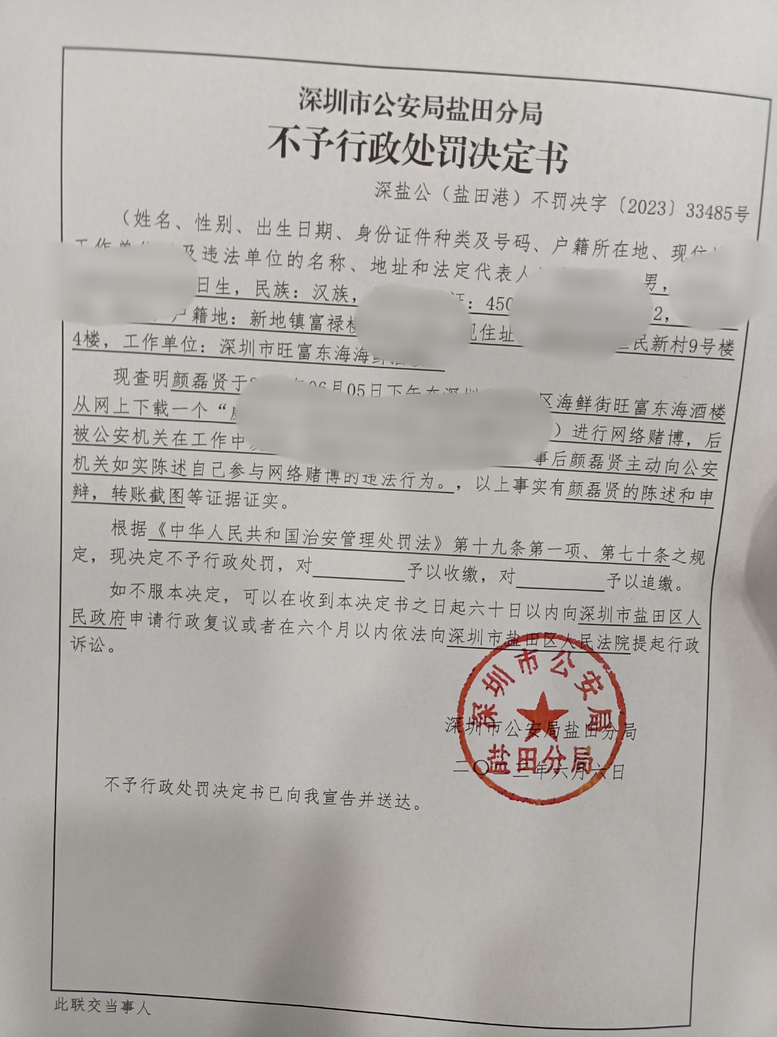 昨天中午玩了一个叫580威尼斯人的平台,然后就没过多久就接到了反诈中心电话,我以为也会跟之前一样就宣传一下反诈知识,拍一下照应付一下工作就走了,没想到他这次深究我,直接上来先跟我宣传一下反诈知识,然后就没收了我的手机,让我跟他回去派出所核实情况,然后就是各种等待,然后又验血录指纹采集验尿什么的,反正很麻烦,等了五六个小时他才给我出来,第一次给我机会,下次再有就拘留了。还有最后我想问一下大家,为什么叔叔说不拘留,还要我验血验尿什么的走一遍拘留前的操作呢?还有就是反诈中心说我浏览了诈骗网址,给涉案卡转了资金!烦请还在玩网络赌博的人,尽早戒了!