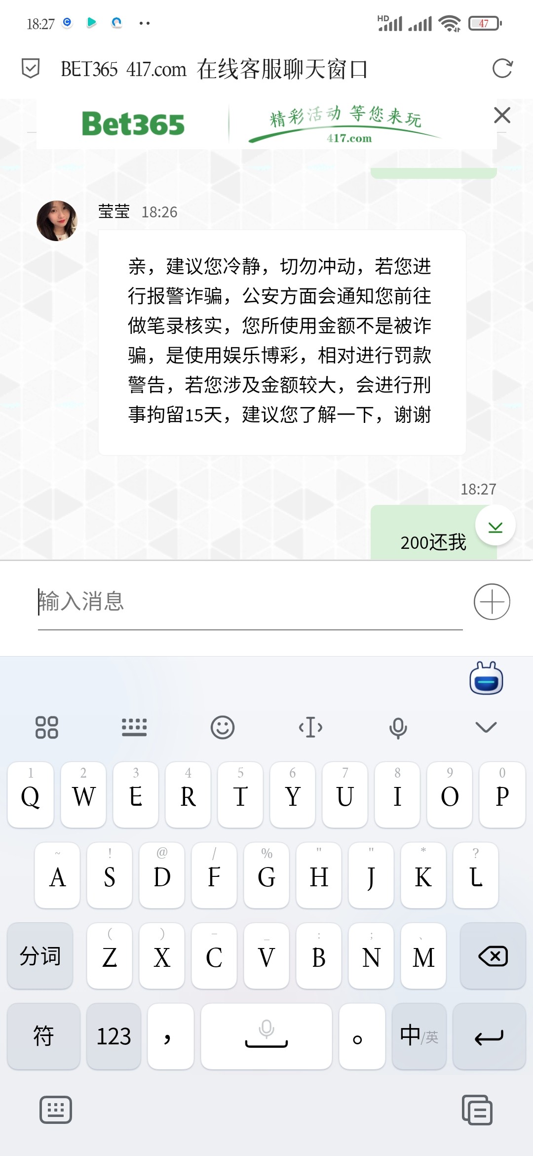 417黑了我200元充值