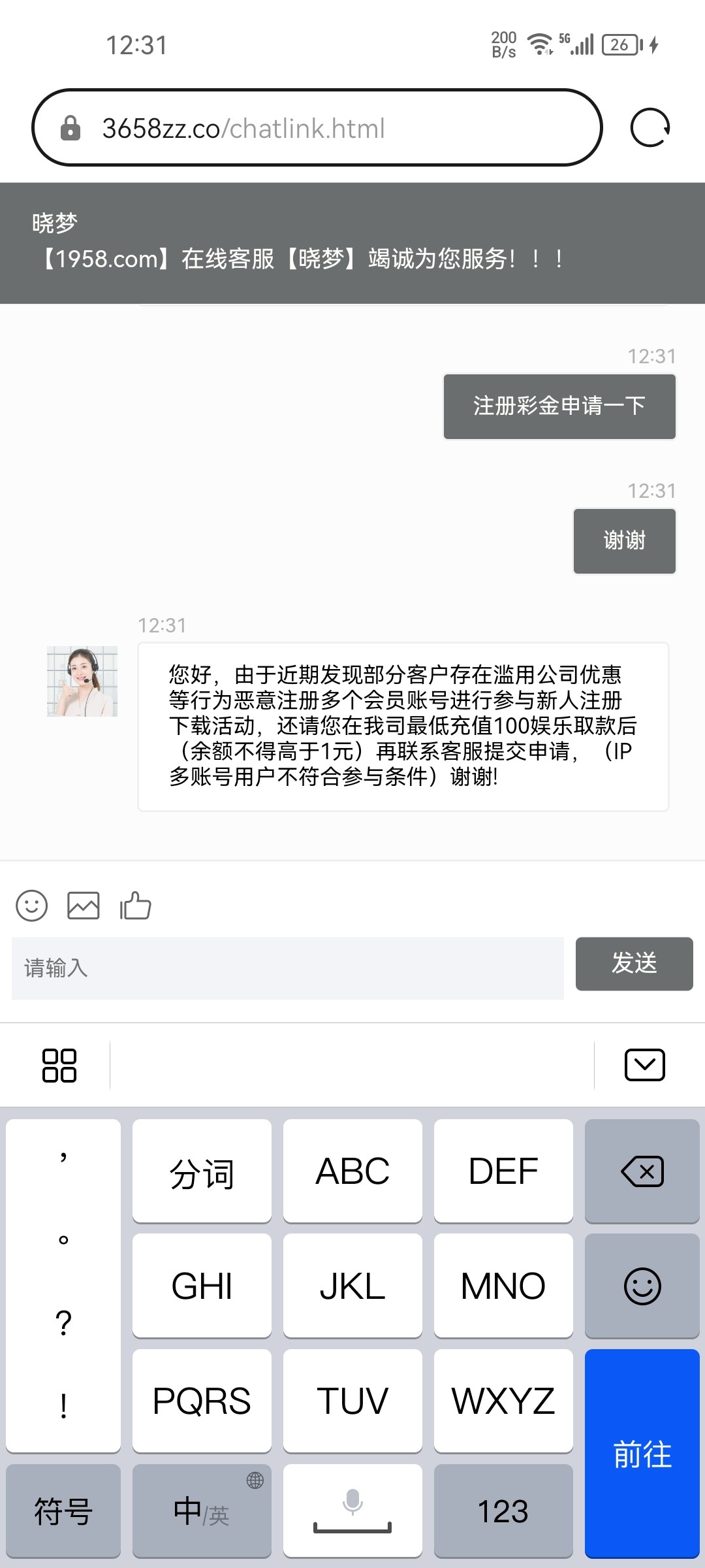 发短信页面网址呢,点进去直接就是平台网站了