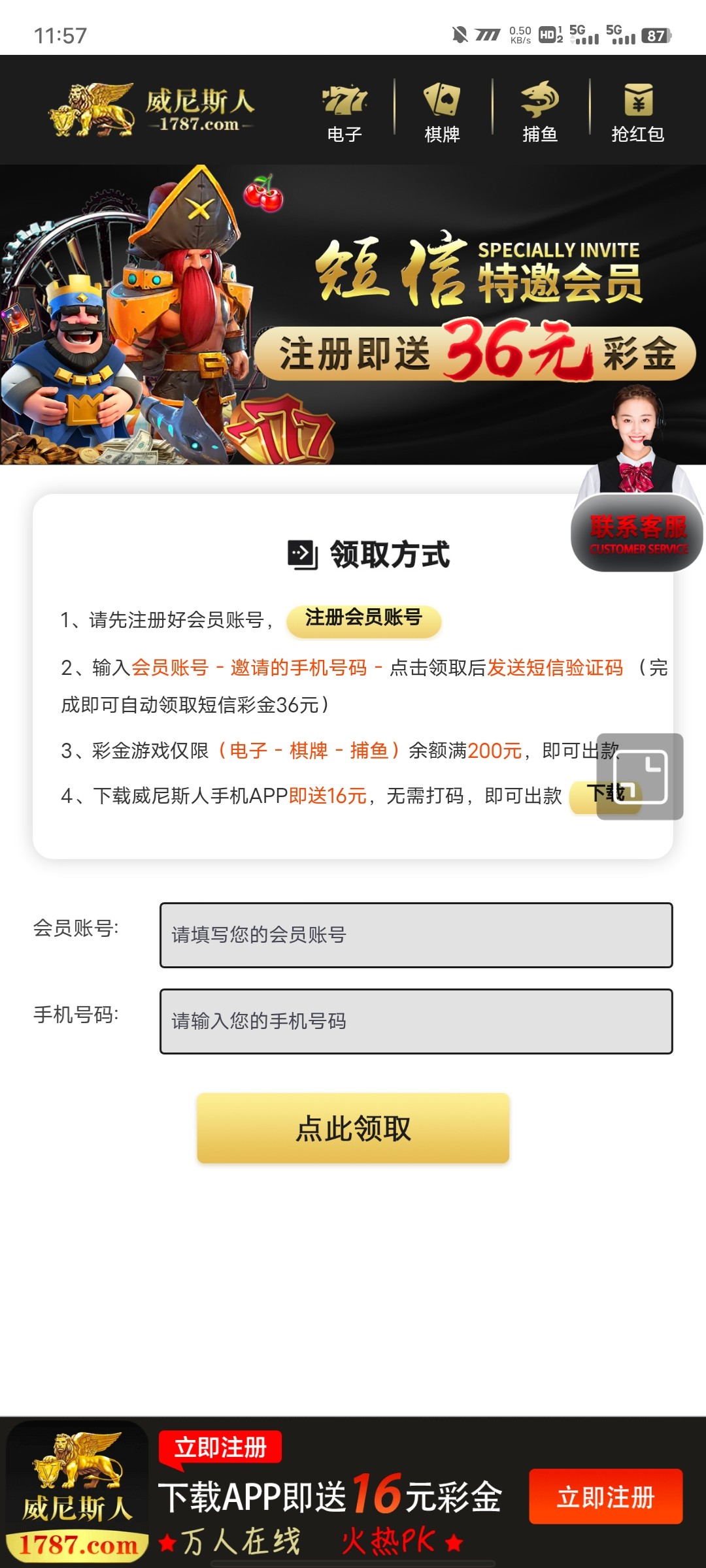 新彩金网短信特邀36