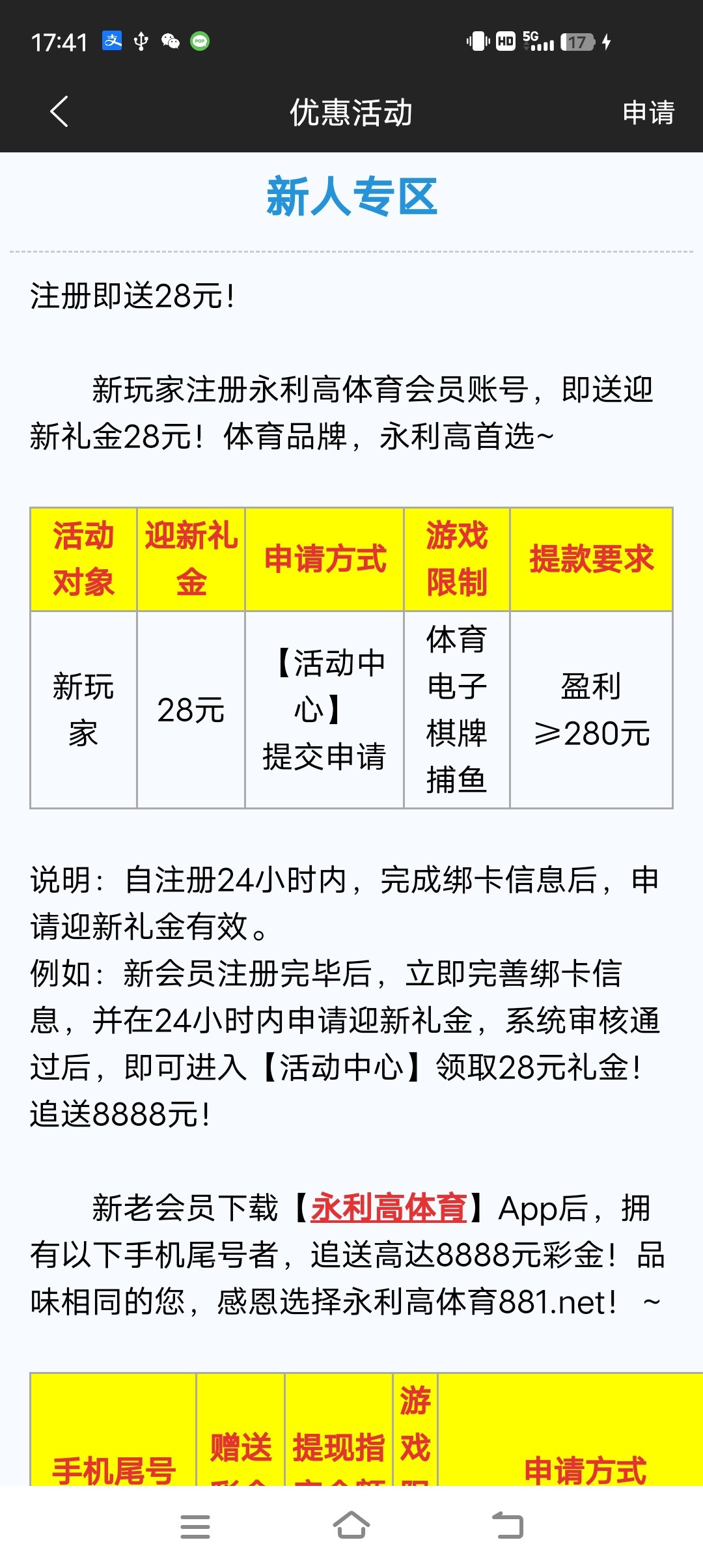 永利高体育28+18元彩金