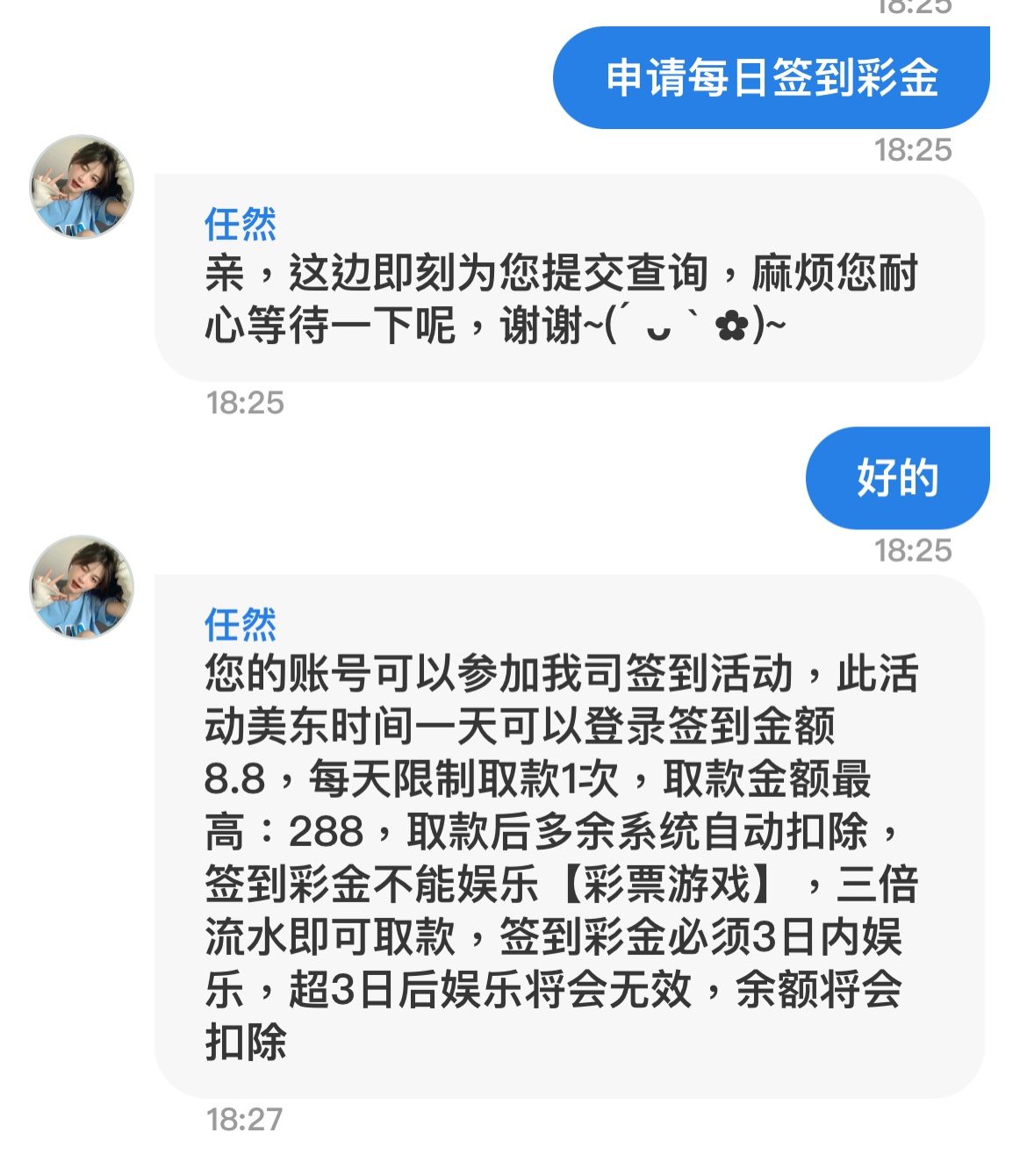 撸爆狗庄 我想知道,每日签到送得8.8彩金打起来取款后,客服说每天限制取款一次,然后我又用反水打起来了,还能不能在取款啊,??