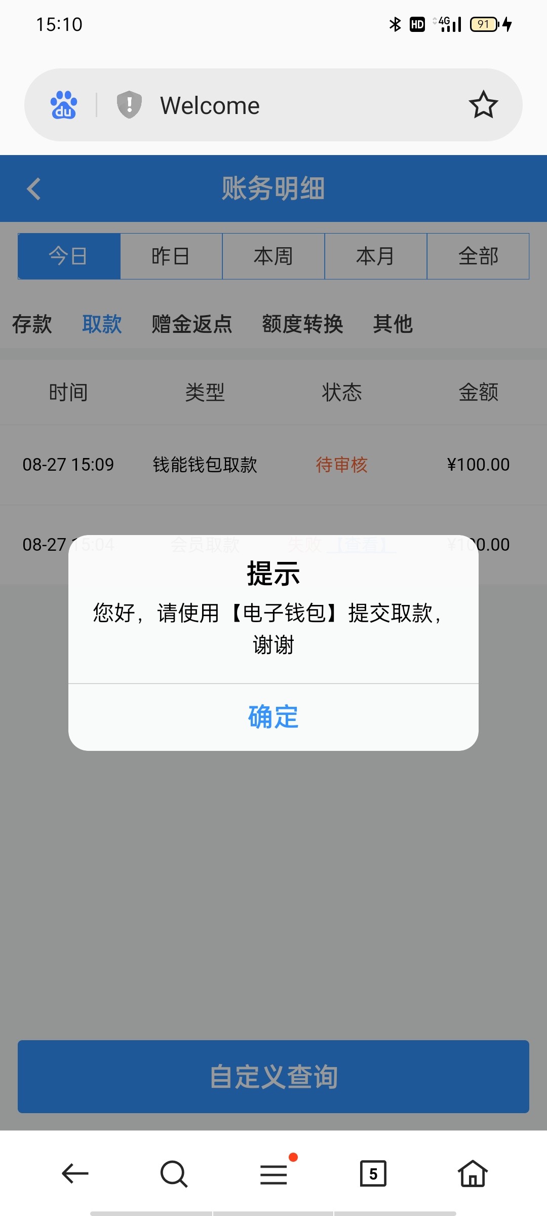 出款一百到账了