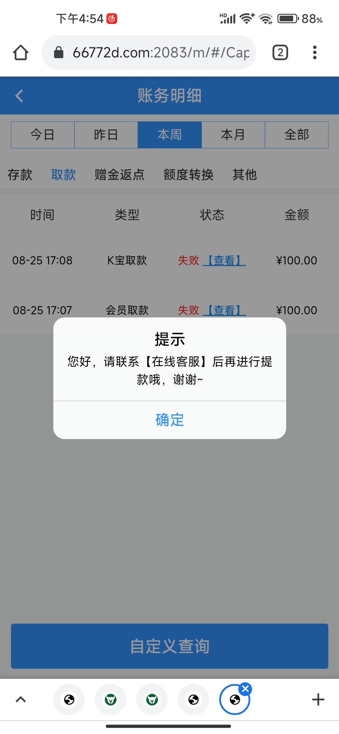 我提银行卡失败,提电子钱包也失败 叫充钱不想冲 打到500输完了 今天又签到打到100提现电子钱包还是失败