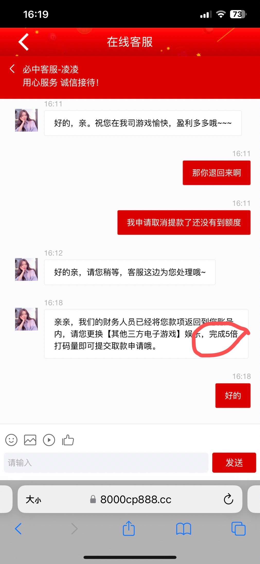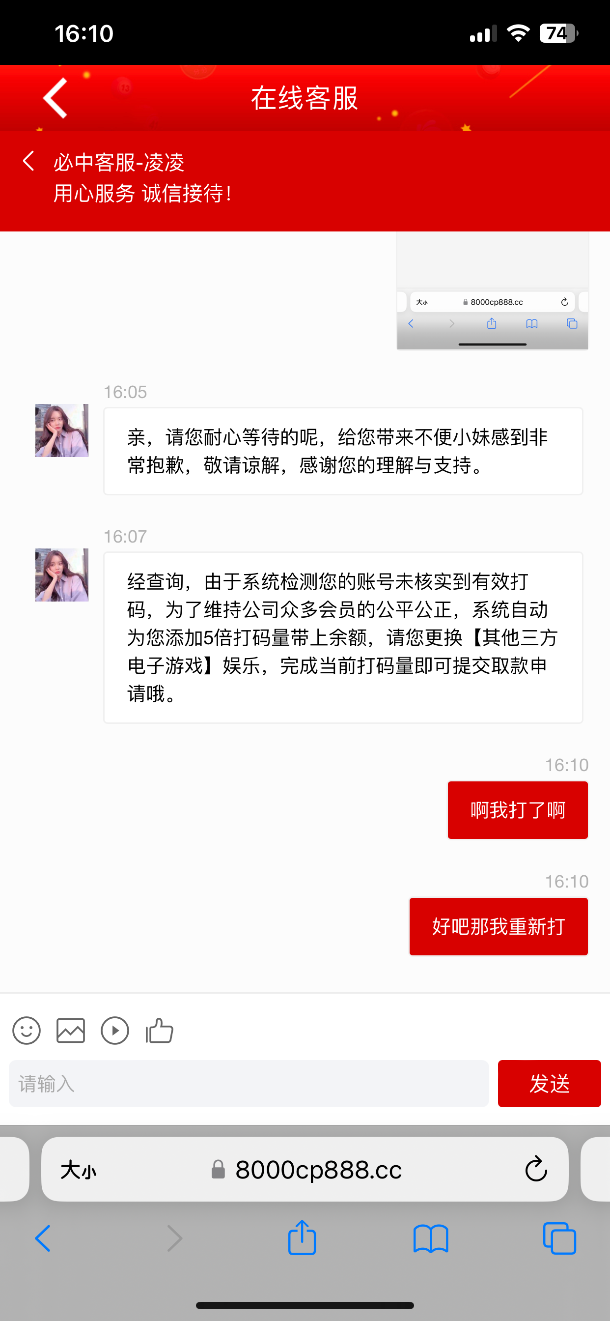 黑网,打到100多退回来要我打三倍流水还说要梭哈才能检测到,真黑