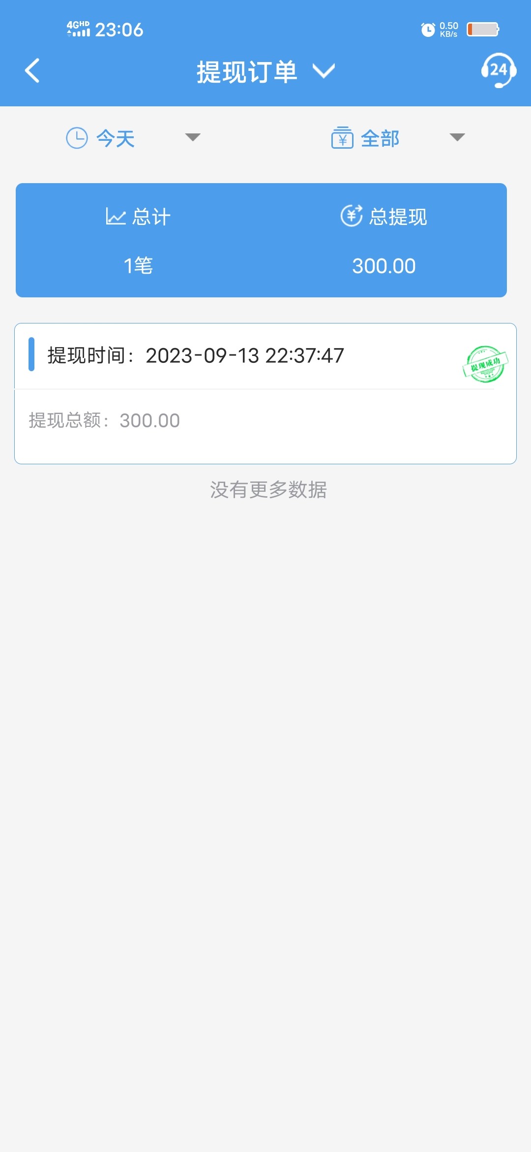 提了300到了