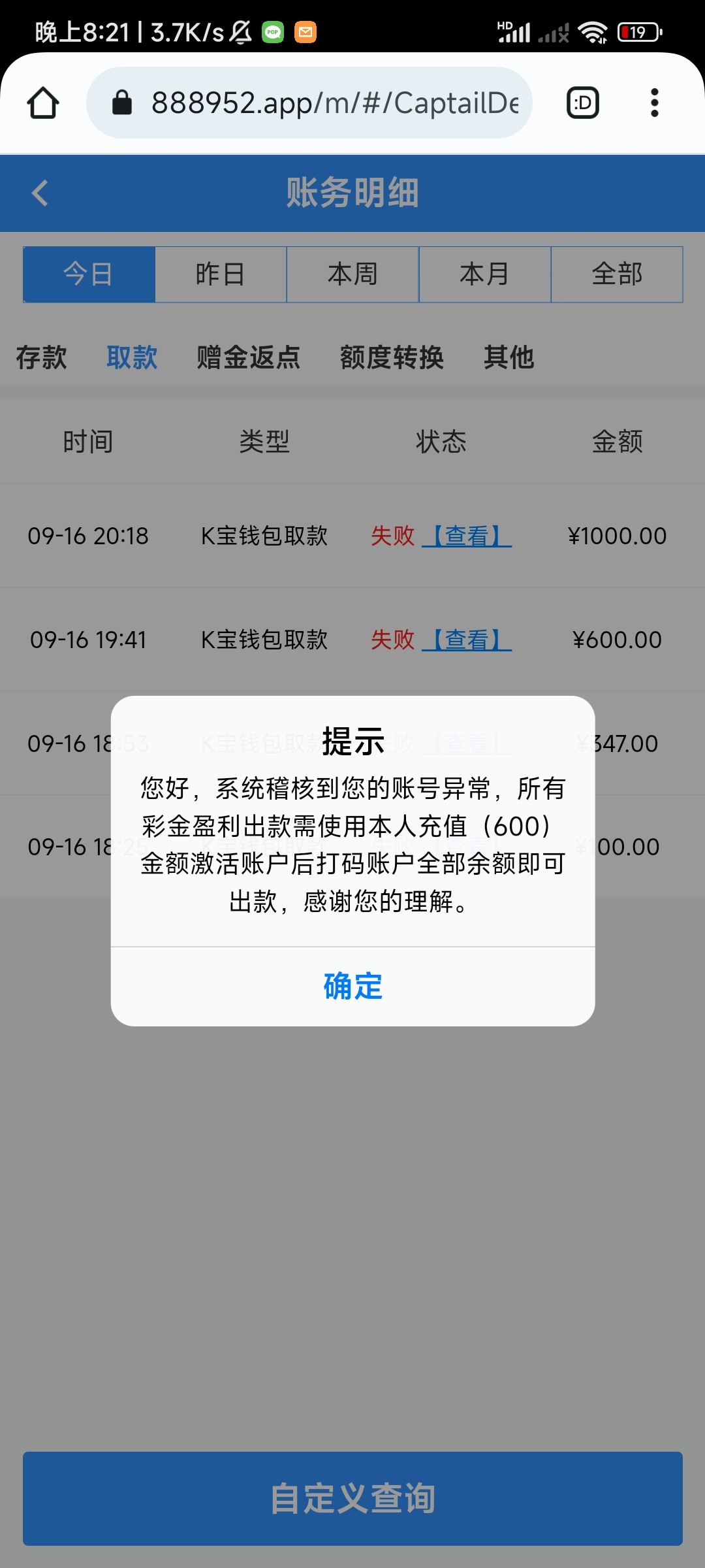 dyx1833 888952.app这个平台有人提现成功吗,tmd套我500了还让充值?