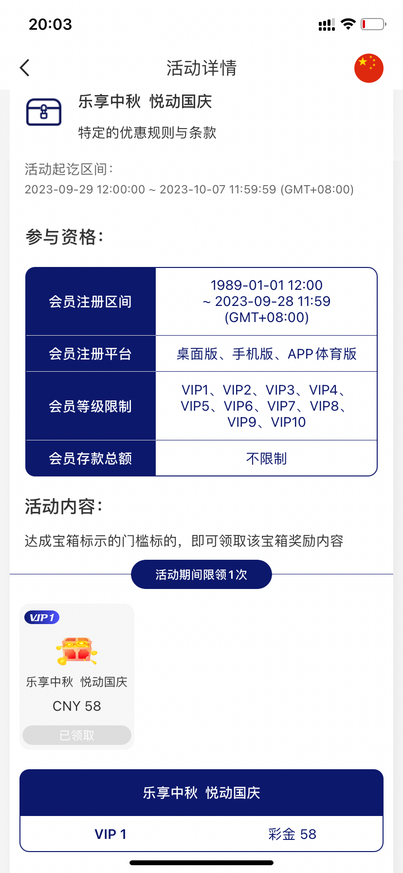 然后打几块钱流水恢复等级 去活动领中秋回馈 V1有58 高等级的高点