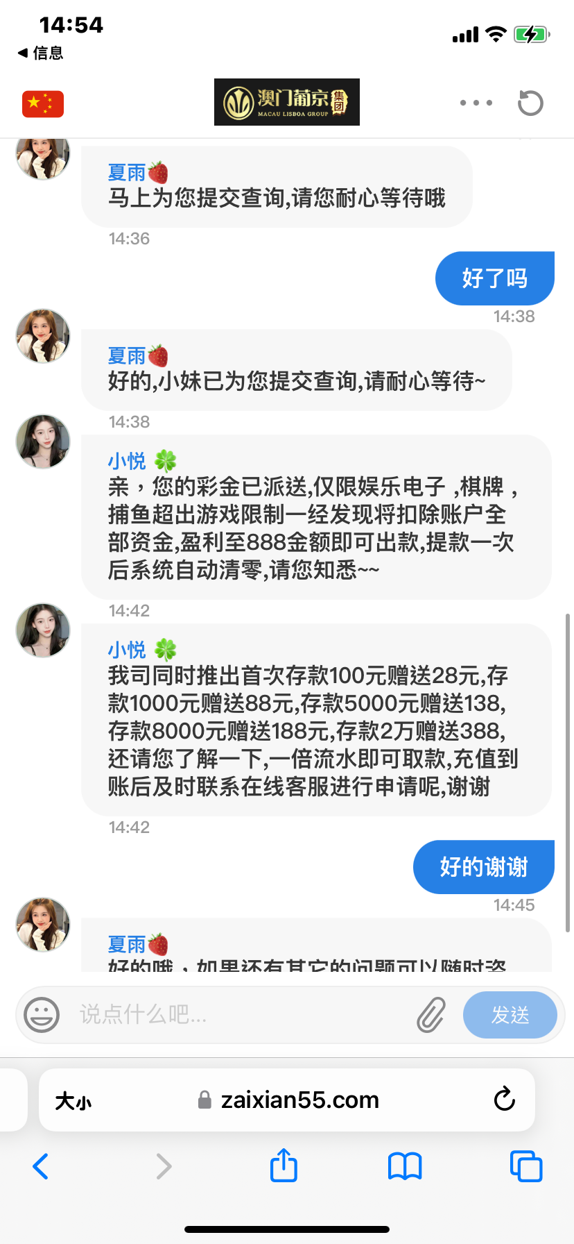 亲,系统检测您不在我们活动特邀名单内呢、无法为您申请彩金的呢, 建议您关注我司首次充值优惠活动,单笔存款达到以下要求可以参与对应彩金申请【100送28 1000送88 5000送138 8000送188 2万送388 】,首存金额越高赠送的礼金也是更高的呢,请充值后并未下注之前进入联系客服申请即可~谢谢