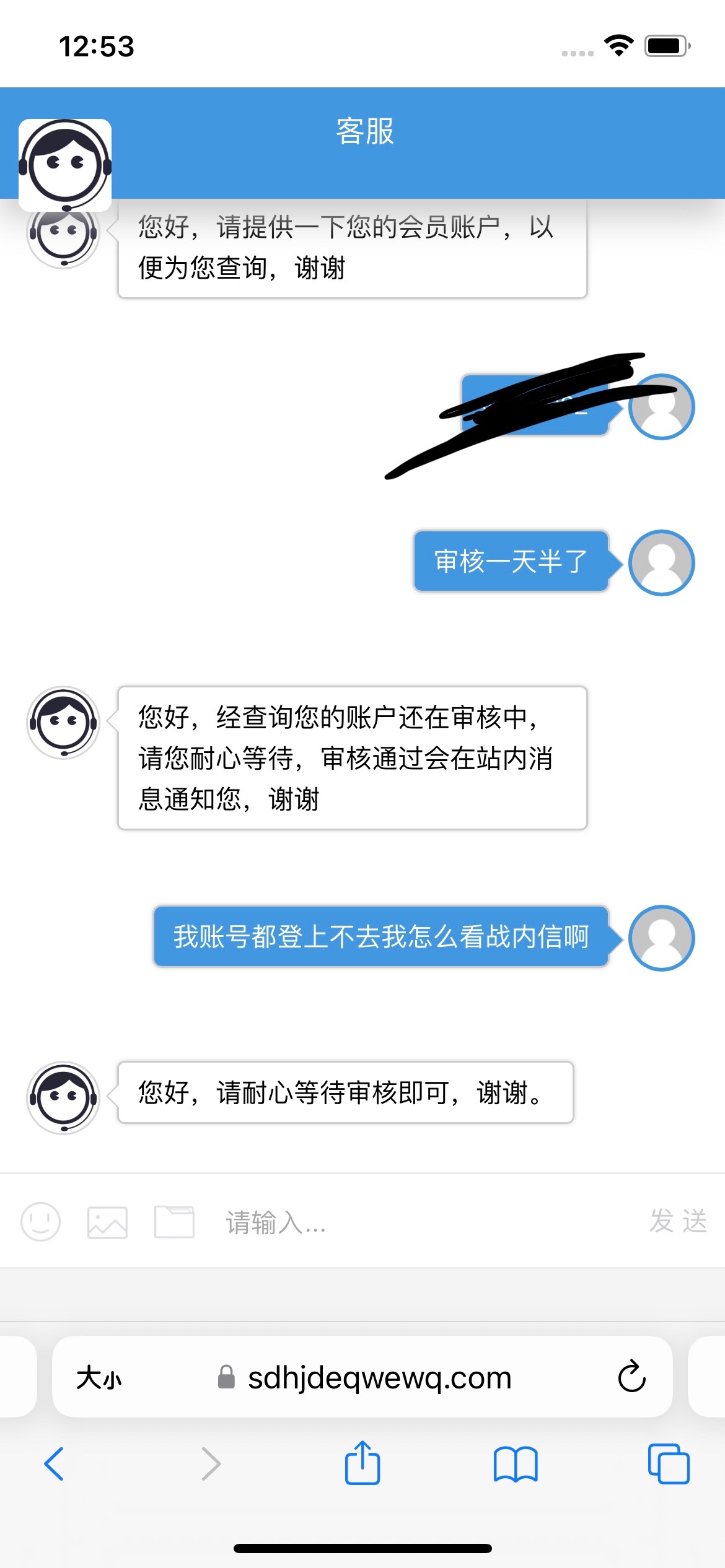 一直在说24小时和让我留意战内信通知,当时我也确实在开直播漏了账号,但是我全程都没输入过密码,到现在我去问都还是在审核,