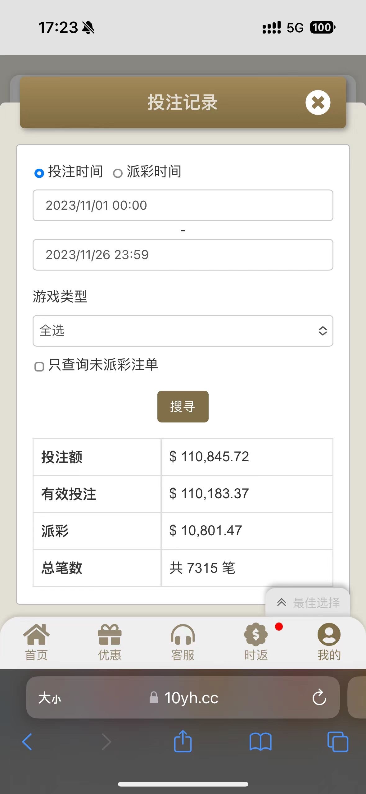 投注11万派彩10万?大水?