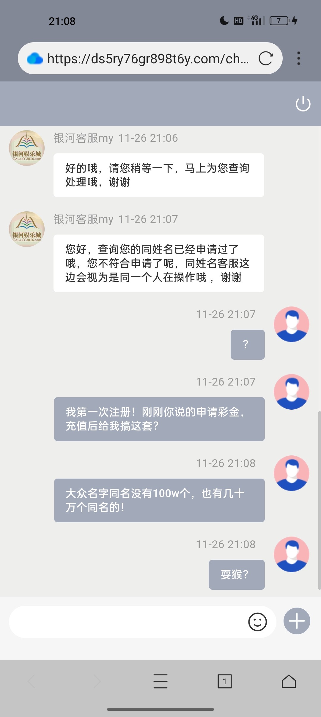 这个台子没一点格局,不建议充值,问了客服活动,给我说充200送88彩,充值后就是经典重名,不送,一切活动都是申请拒绝,聊天软件也找了客服,没用,重名懂得都懂