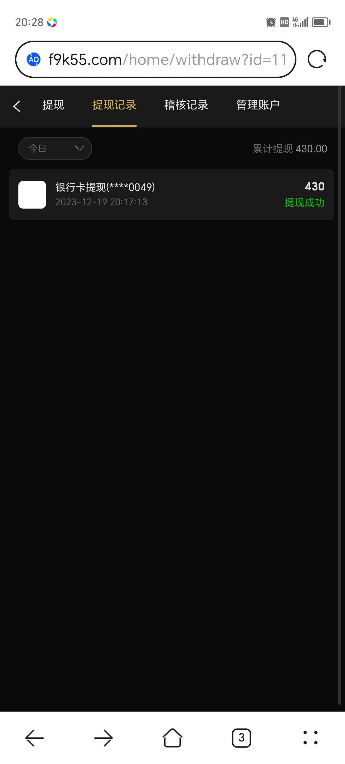 麻将2水大,我反水的三块钱。又提现124,不过上次提的还没到账,客服也打不开。哎。