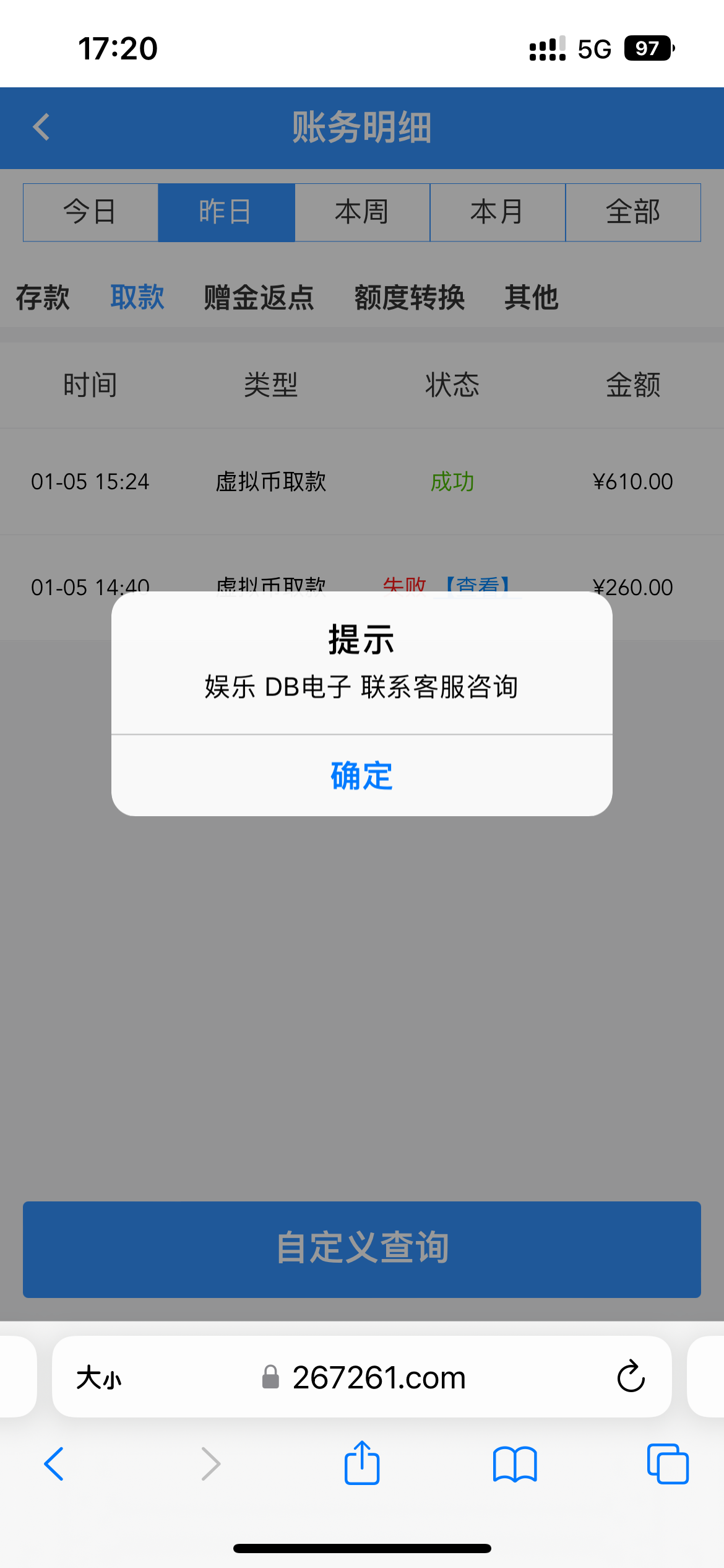 打电话来的 上去有18 加了聊天软件客服 说有任意充值送58-588 存了100送了58 没看清楚 不让打电子 我玩了电子提260退回 罚我1300的水 限制打1-3分内开奖的彩票 过两关 打到了1000 怕提现黑 乱玩输下去400 流水够了提610秒到