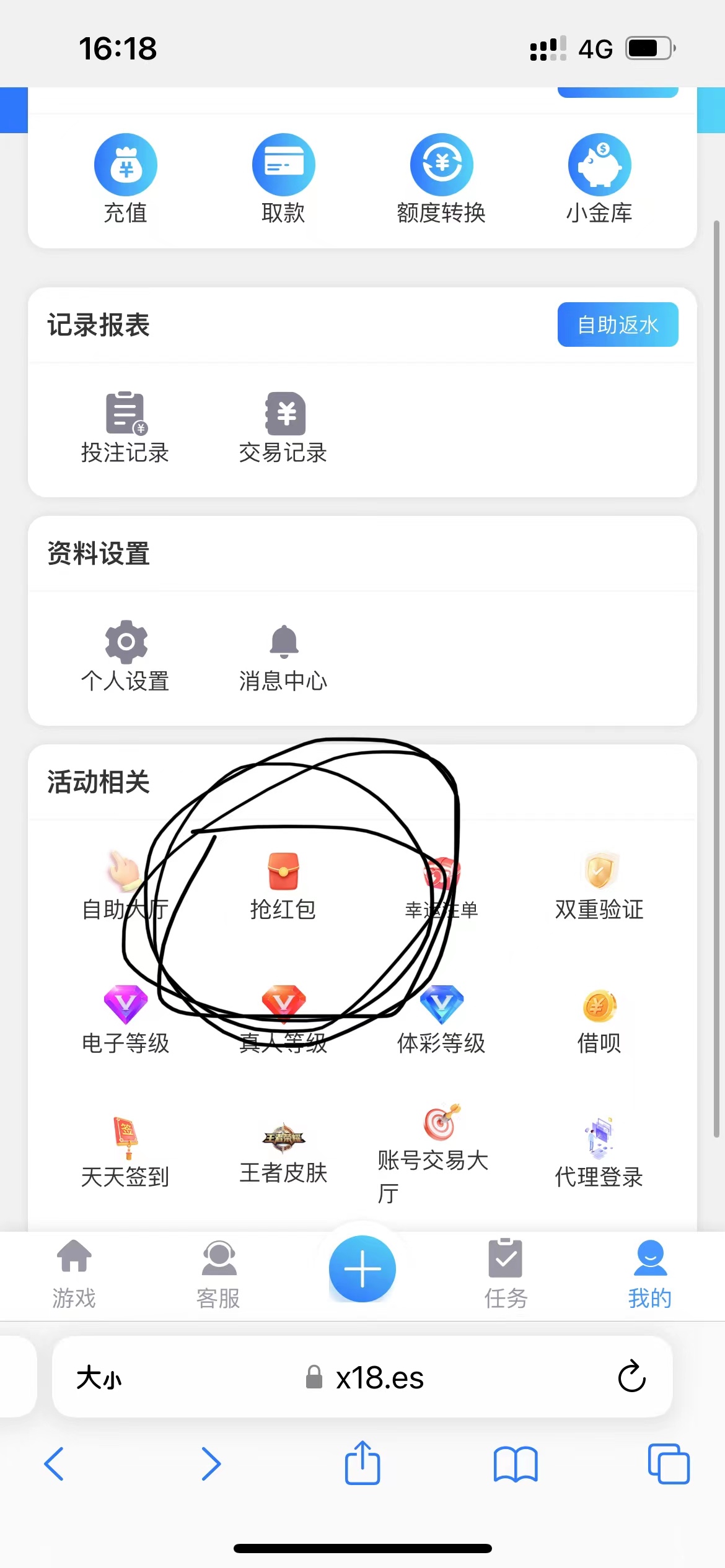 点击我的抢红包