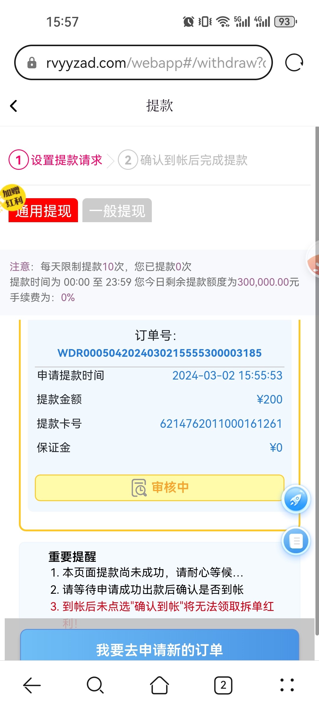 提200到账了