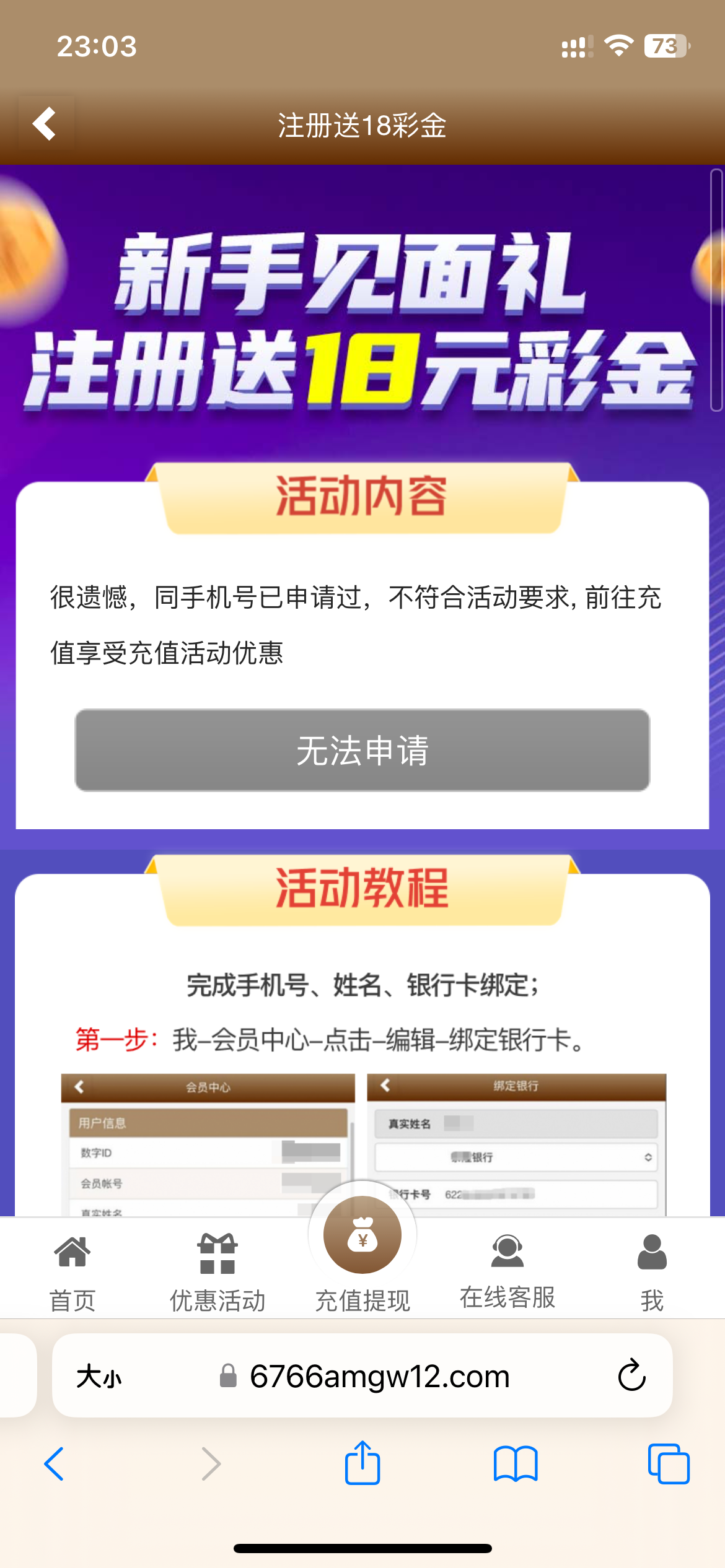 新用户注册绑定银行卡去我的哪里自助申请18彩金,最低180提款。下载APP可以申请28APP彩金,注意看游戏限制,查IP有点严最好三同申请,具体自测切记勿充值。