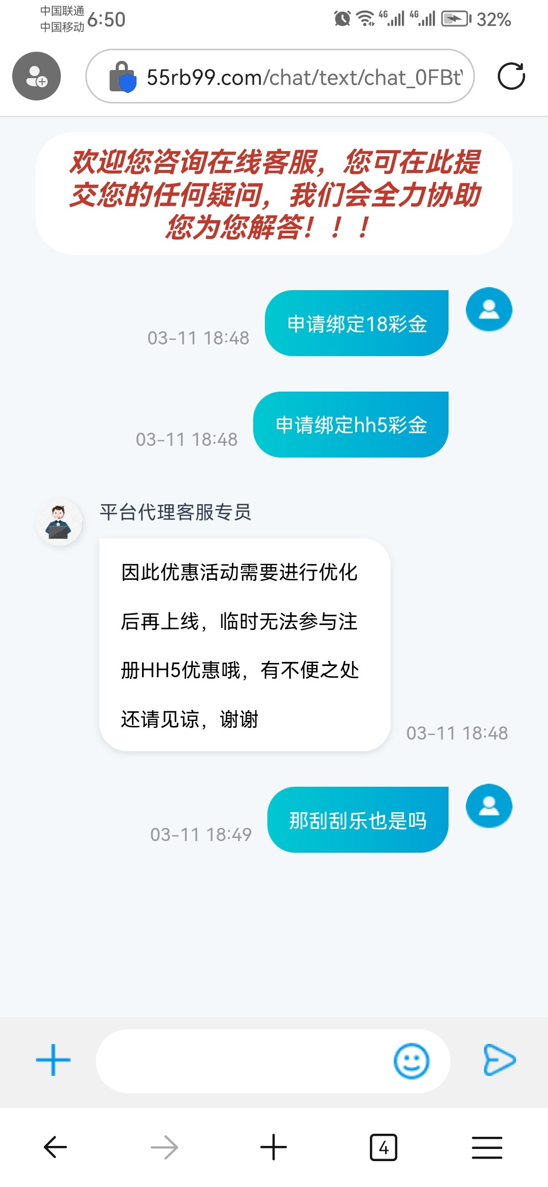 hh5客服说送18彩金活动还没有上线