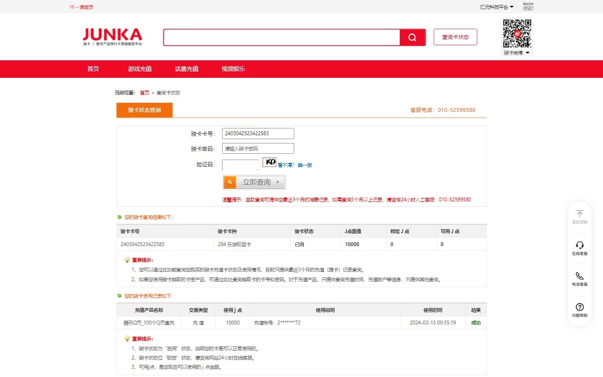 我0:54买的卡密提交上去0:55卡密显示被使用过了然后万赢平台那边不承认,而且我还是一个几年的万赢老玩家大家注意避雷。