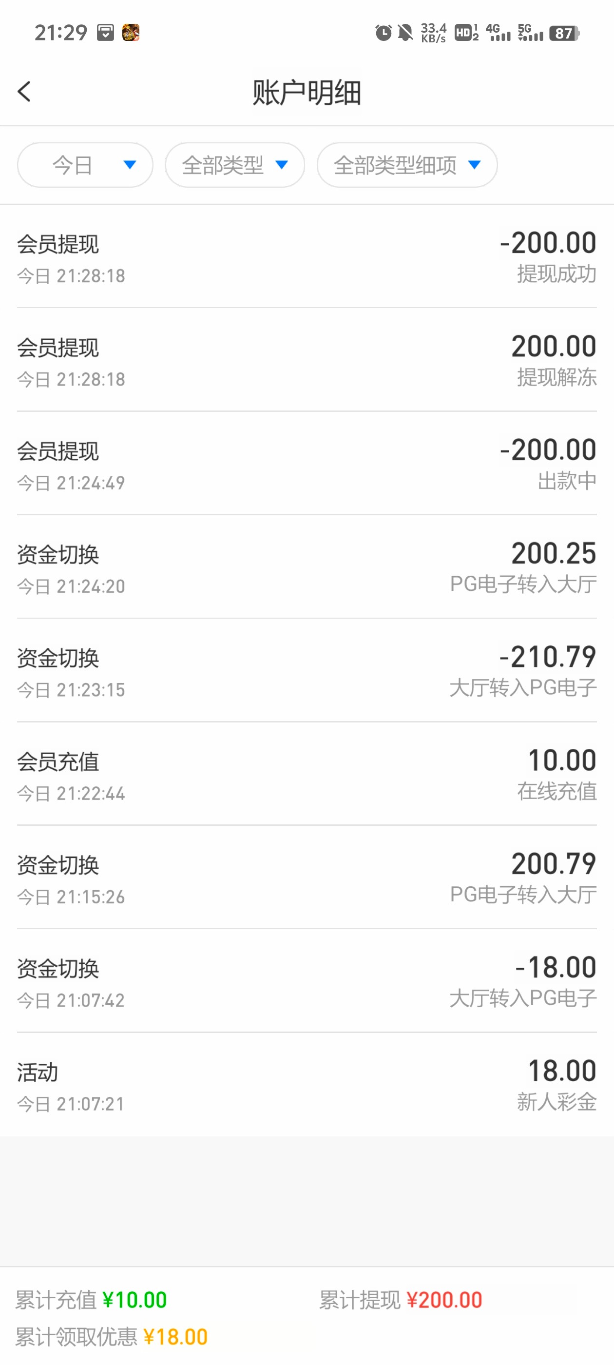 打出来了上到300舍不得提现死了累了