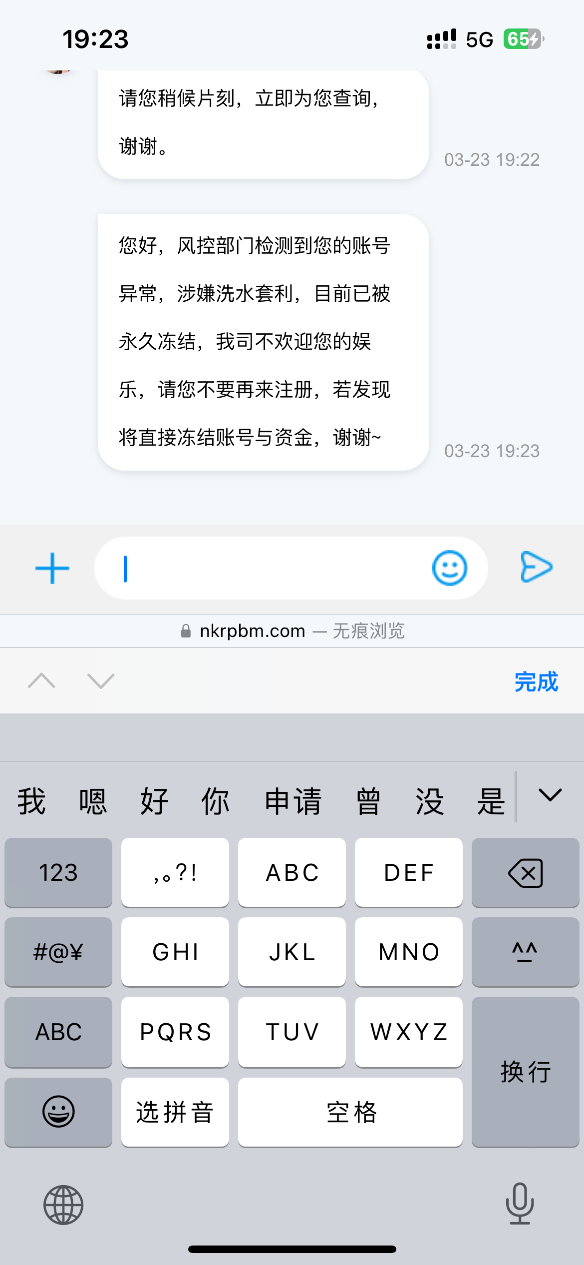zhiao666 您好,风控部门检测到您的账号异常,涉嫌洗水套利,目前已被永久冻结,我司不欢迎您的娱乐,请您不要再来注册,若发现将直接冻结账号与资金,谢谢~