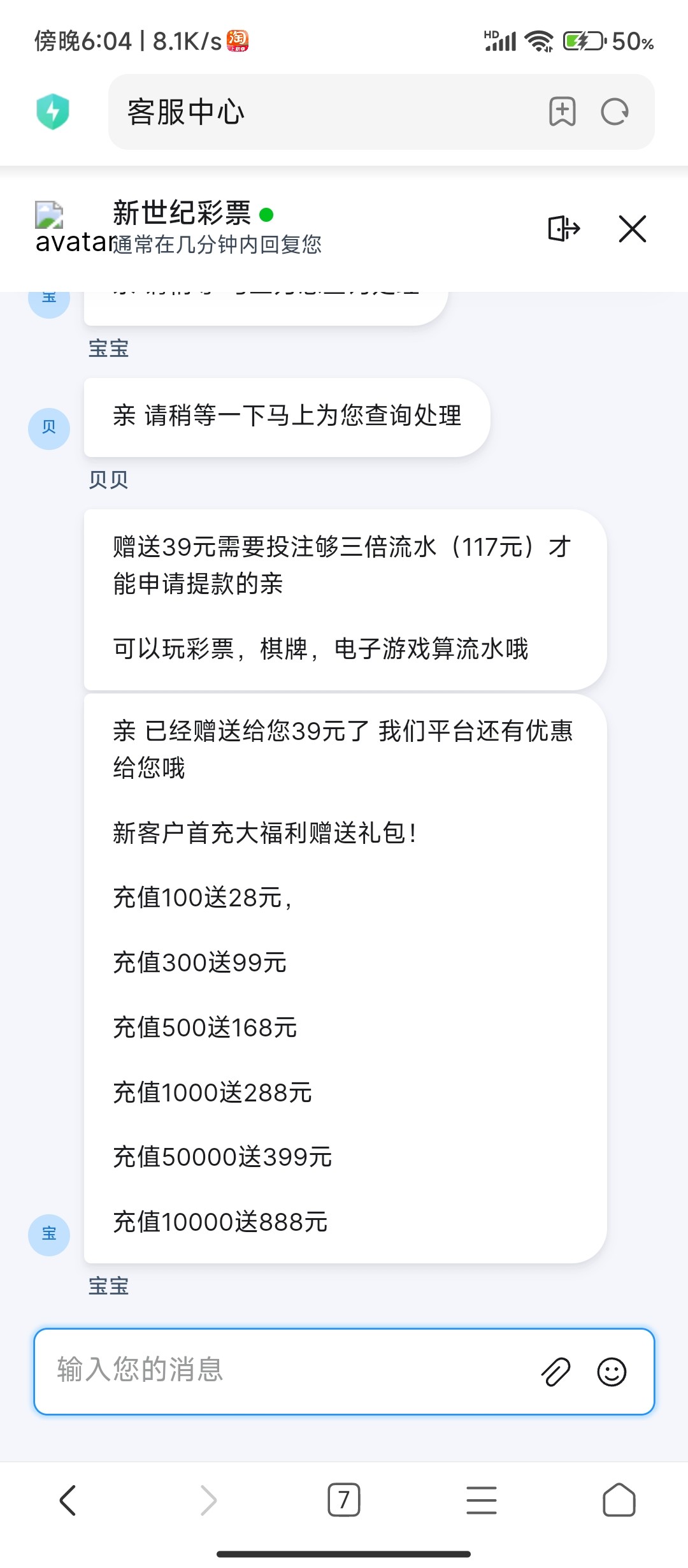 新世纪短信回归送39