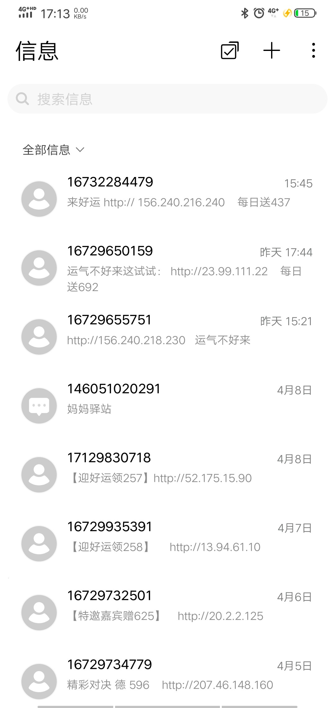 每天都能收到几个短信 电话 全他妈的是首充  毛都不送草