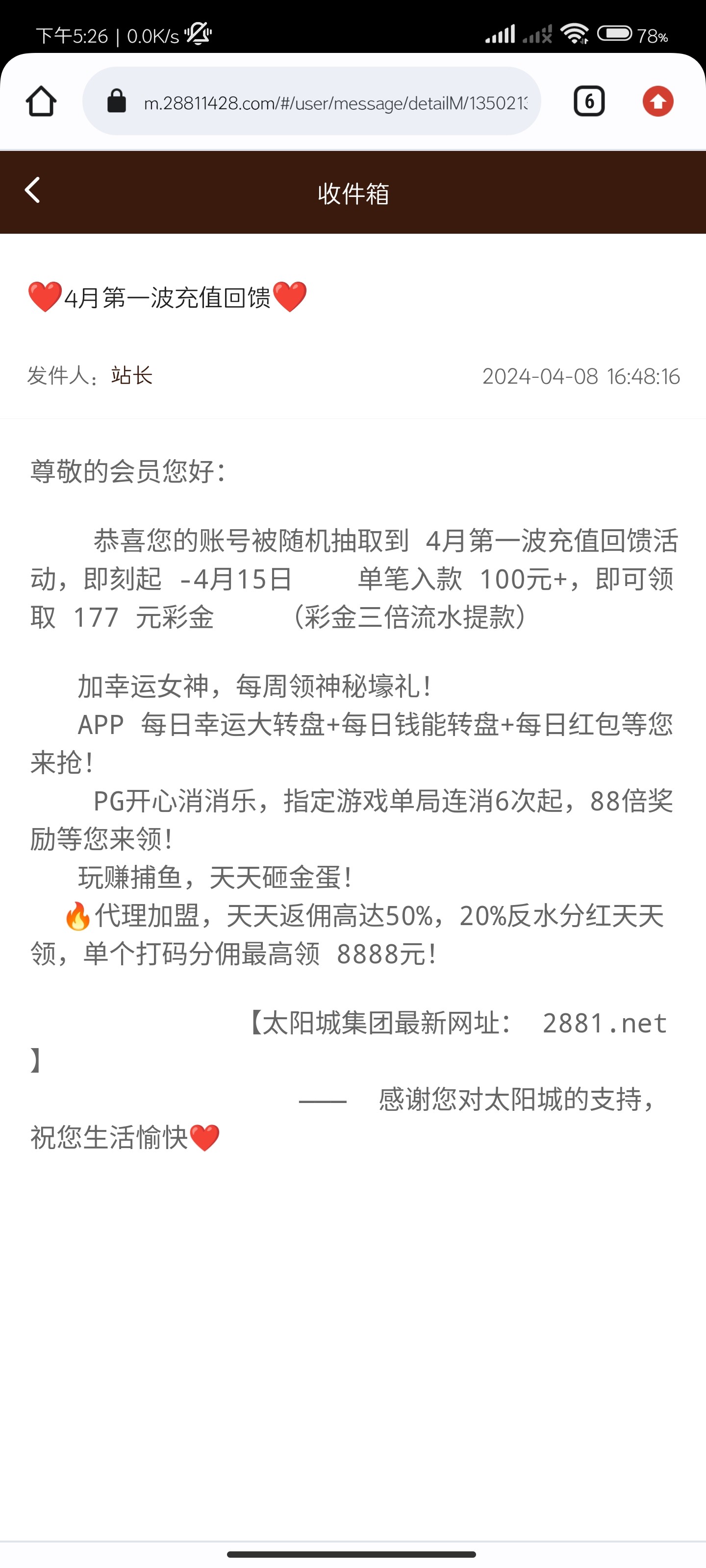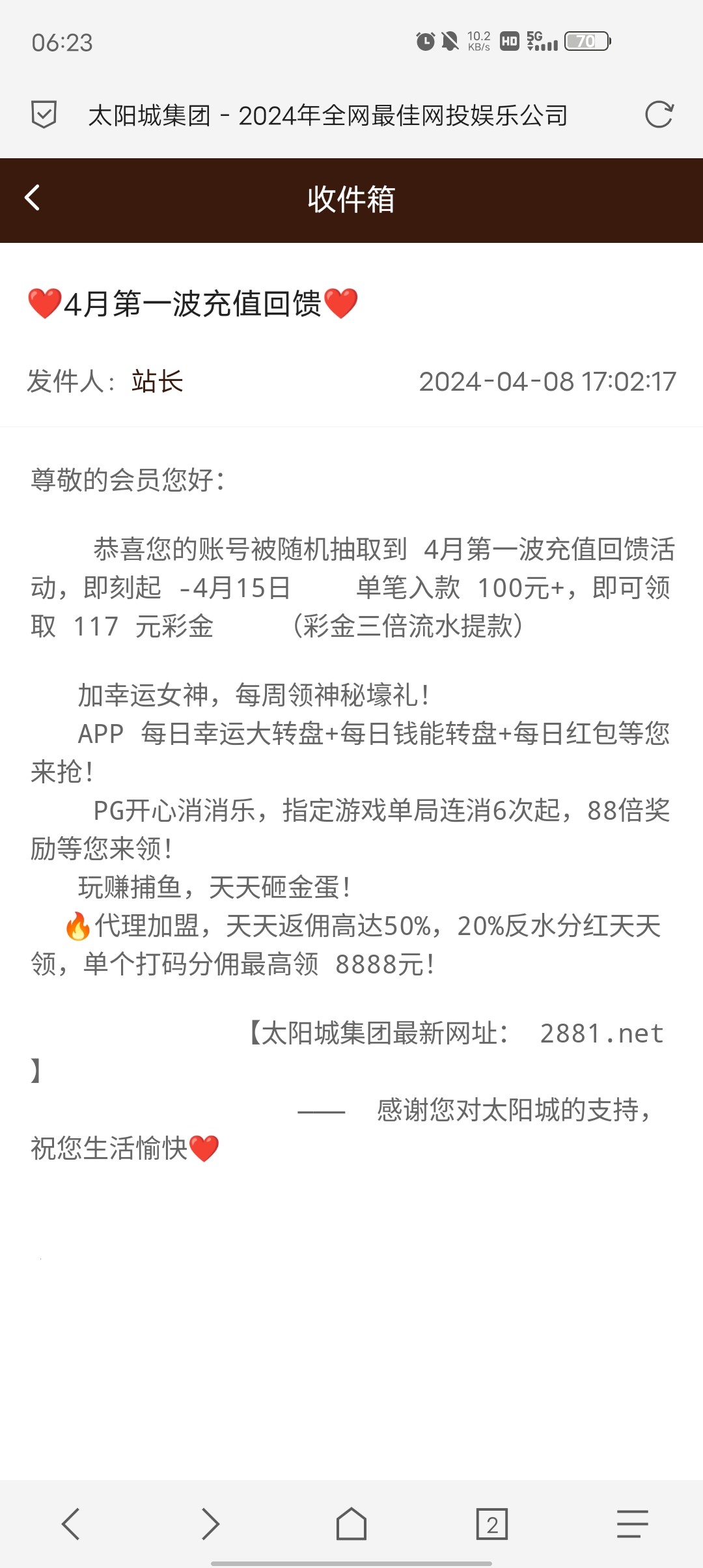 2018太阳城回馈充值