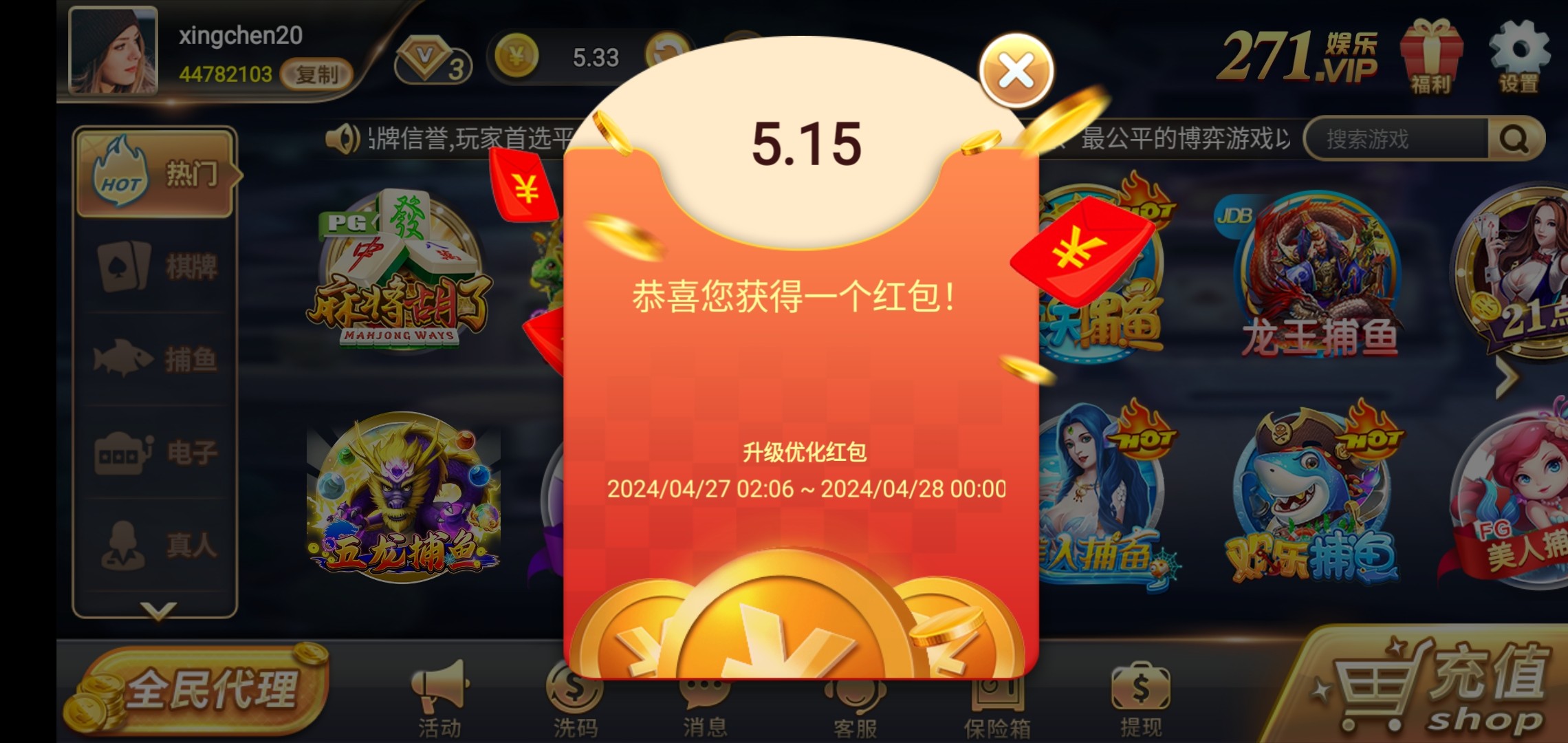 271登录升级红包彩金