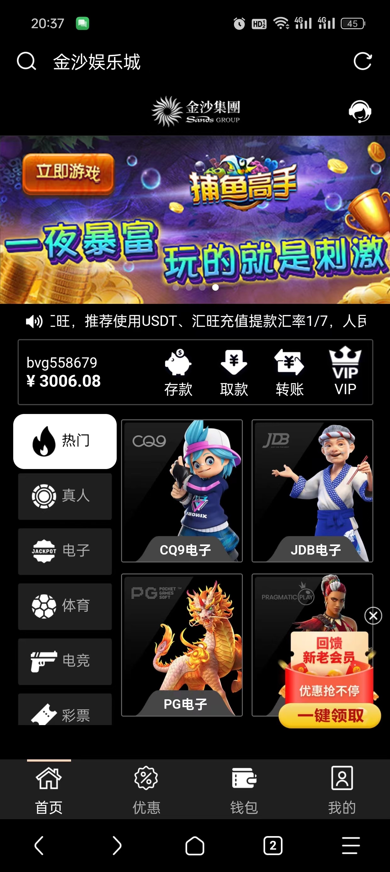 新用户注册绑定汇旺实名账号ID秒送38彩金,没有秒可以去找飞机客服申请试试,比较麻烦介意无视即可。