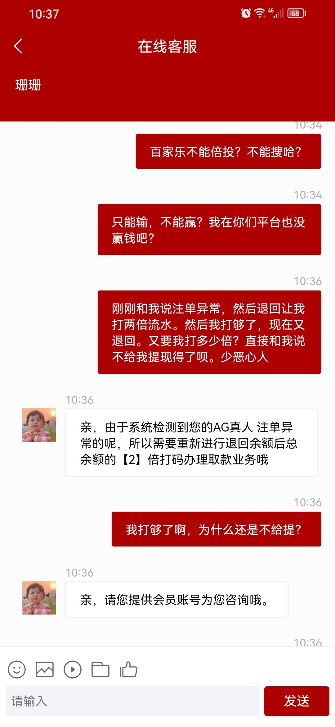 哈哈,又罚3倍流水。畜牲990老会员,玩了一年多打码几十万。这样恶心人