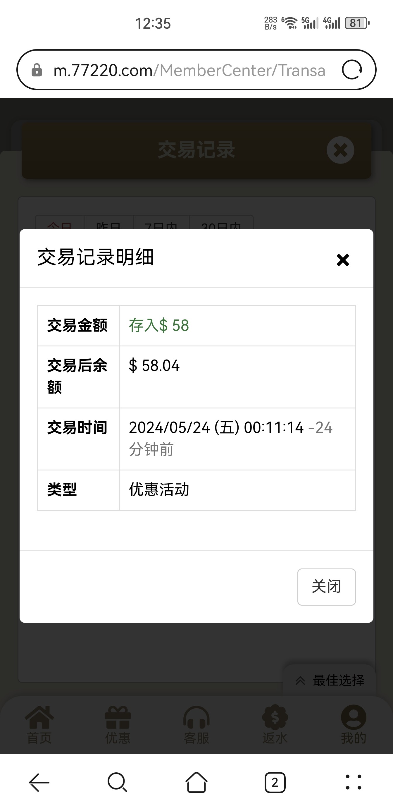 回馈36彩金 我没打出来