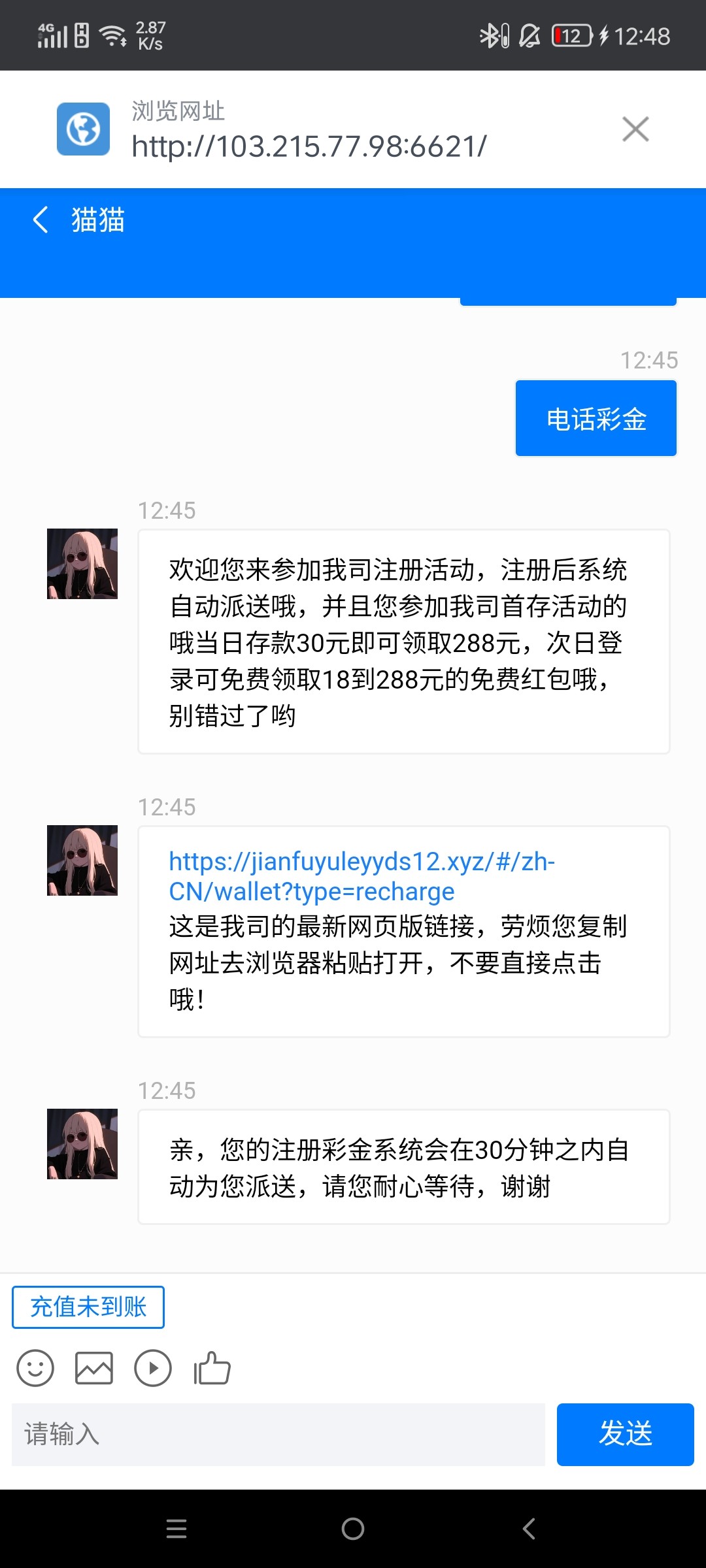 接了电话,客服页面打不开。