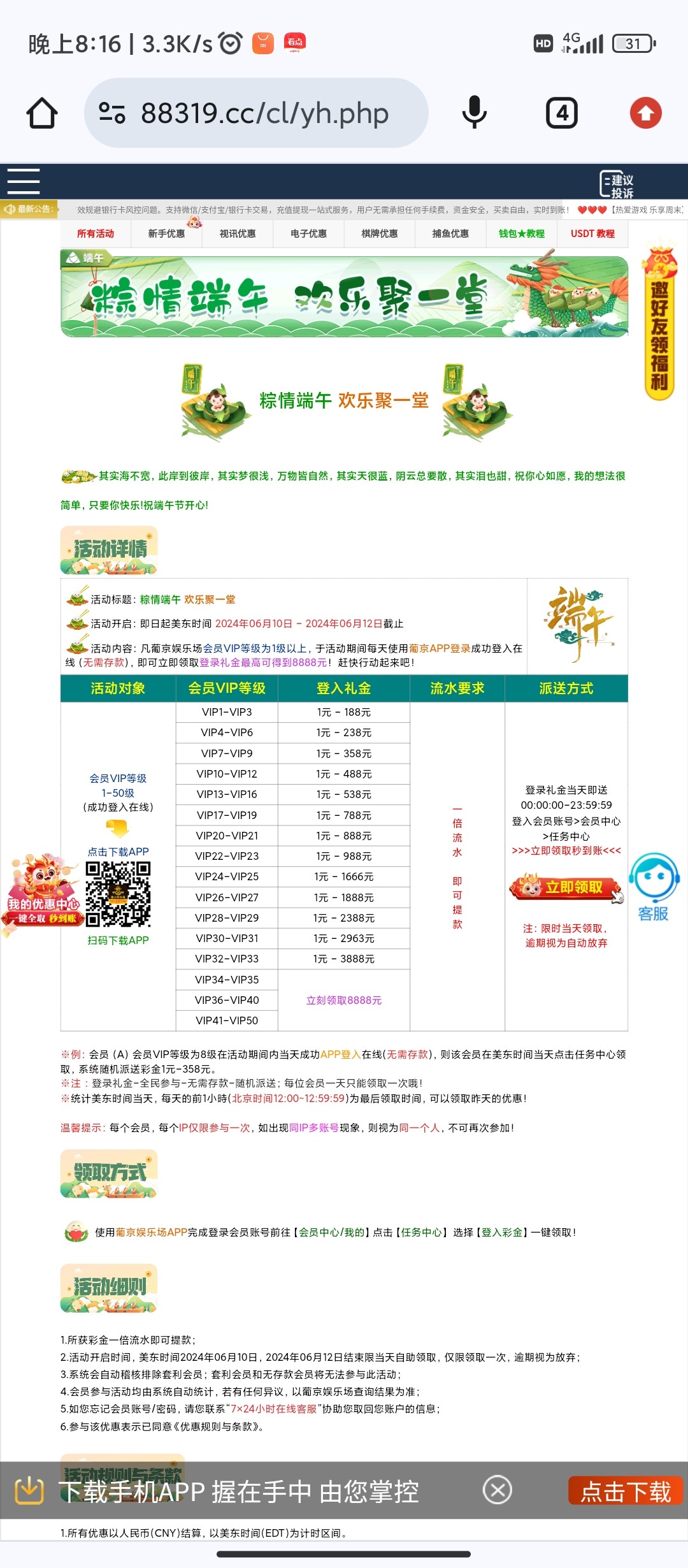 葡京娱乐场端午回馈