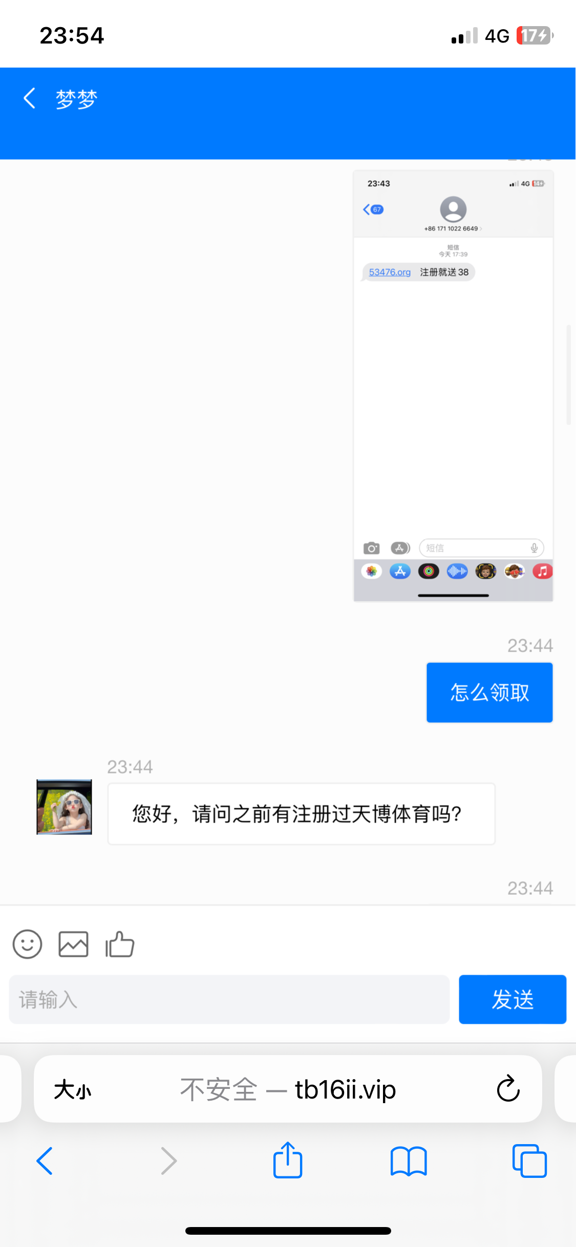 前面他问我有没有注册过天博 然后我说没有 他就叫我注册小鸟体育 然后加了专员 就送了